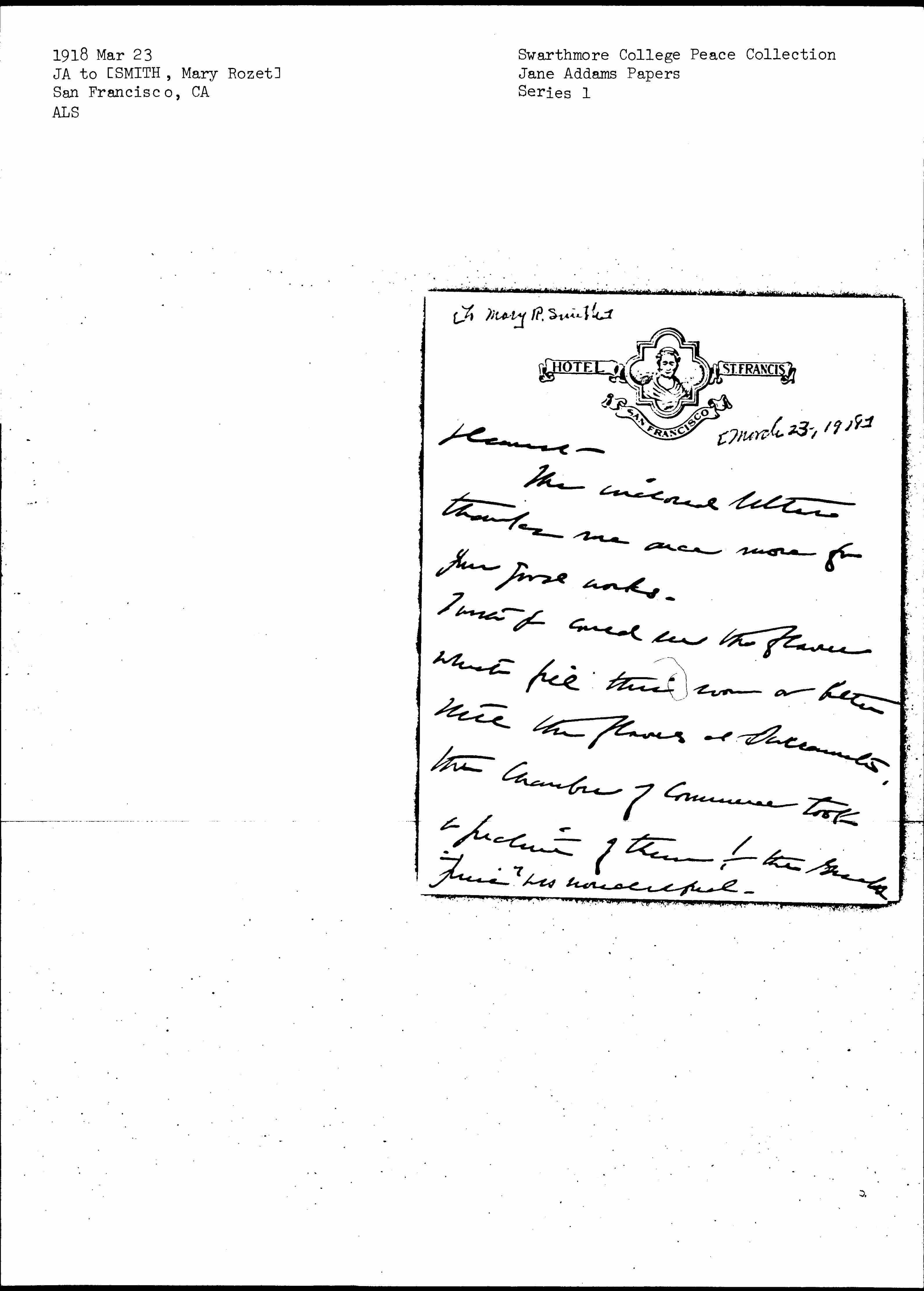 I wish you could see the flowers which fill this room or better still the flowers at Sacramento. The Chamber of Commerce took a picture of them! -- the Greek "piece" was wonderful. [page 2]