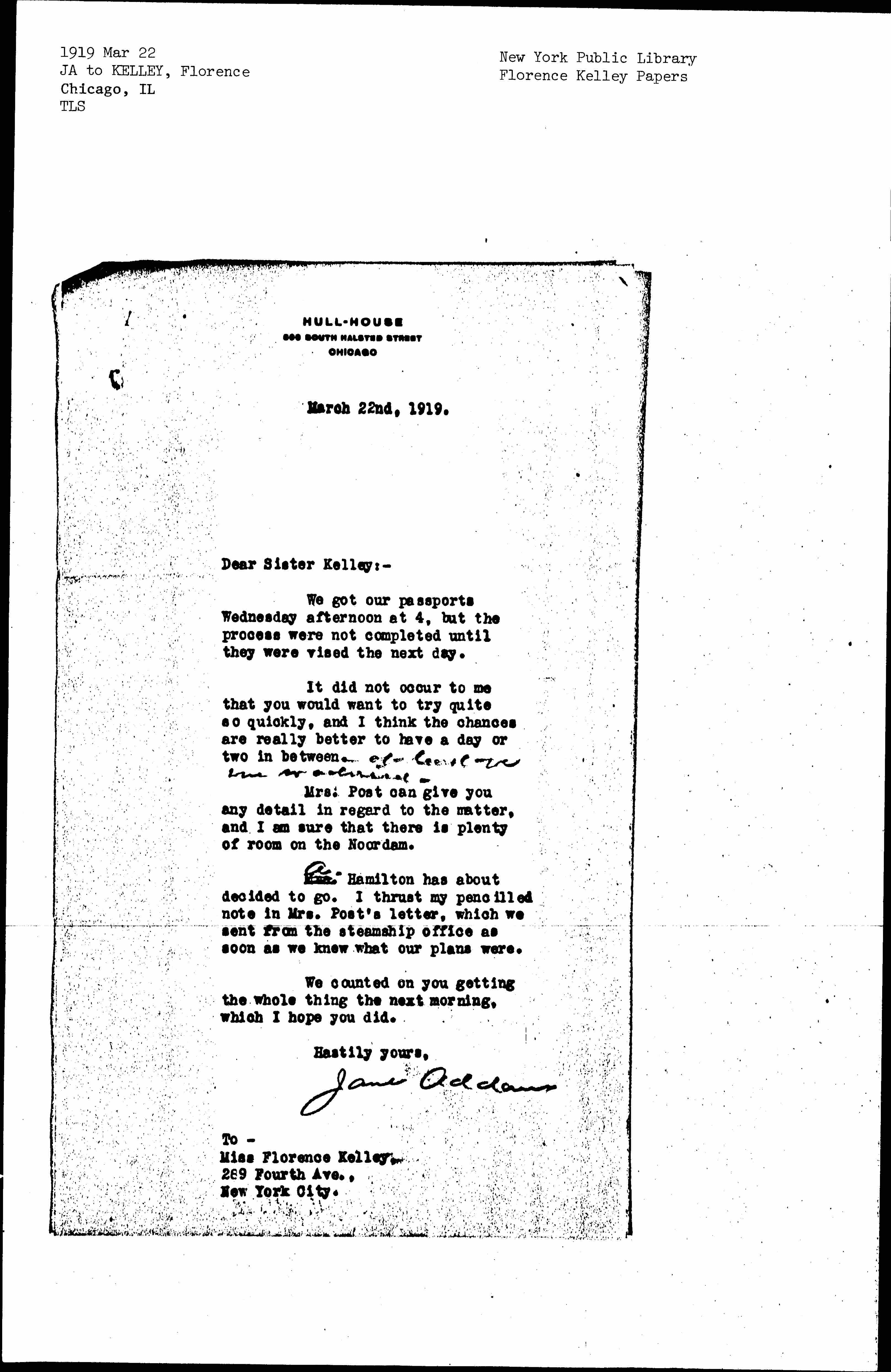 [illegible] βAβ Hamilton has about decided to go. I thrust my [penciled] note in Mrs. Post's letter, which we sent from the steamship office as soon as we knew what our plans were.