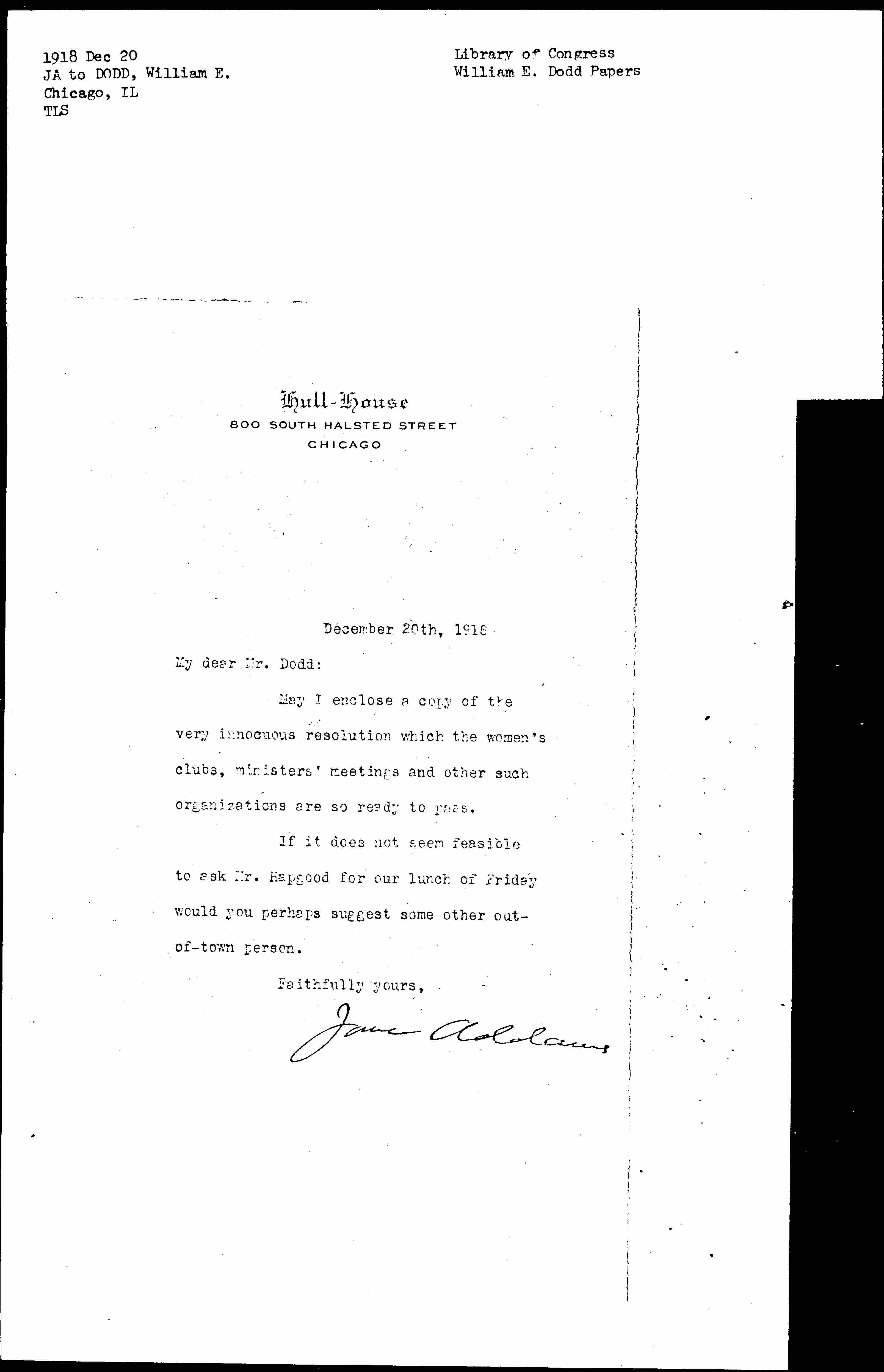 Jane Addams [signed]