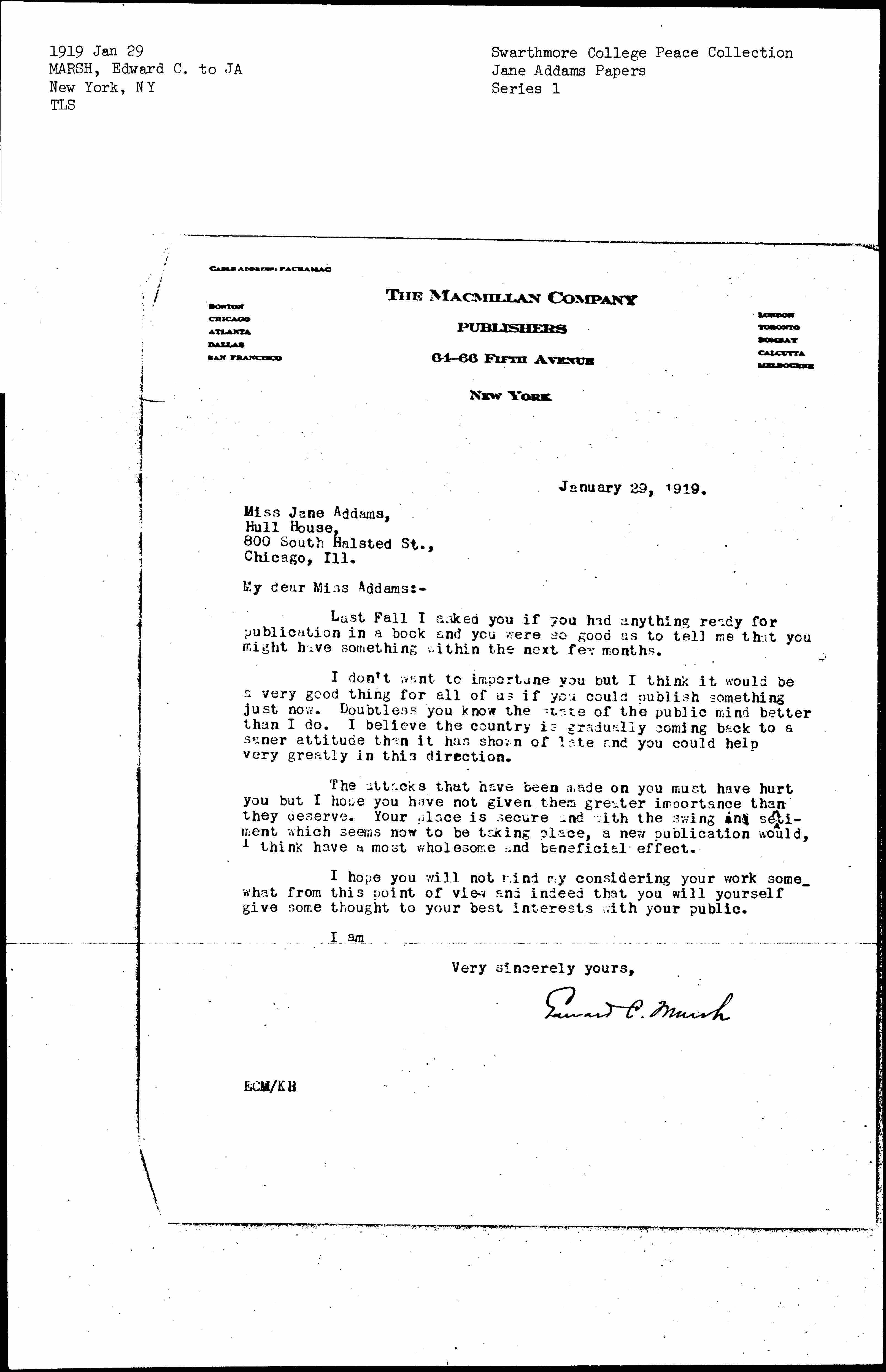 I don't want to importune you but I think it would be a very good thing for all of us if you could publish something just now. Doubtless you know the state of the public mind better than I do. I believe the country is gradually coming back to a saner attitude than it has shown of late and you could help very greatly in this direction.