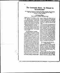 In measuring the value of the Community House as a factor in reconstruction in the larger cities, we might take a single illustration of the purposes which such a house could serve. In the very large city, the field of operation of any one house would necessarily be confined to one particular district. Let us suppose that it is located among the homes of industrial workers. Its patronage and use would be restricted to the men whose only club has been the corner saloon, and to the women whose social contact has been limited to gossiping across the back fence. It would be a sort of poor man's club where he and his family were offered clean, healthy recreation and were schooled in the social and political problems of democracy. It might house night schools in Americanism. If it were directed by competent men and women, it would become the common meeting-place of all the welfare workers of the industrial plants in its neighborhood.