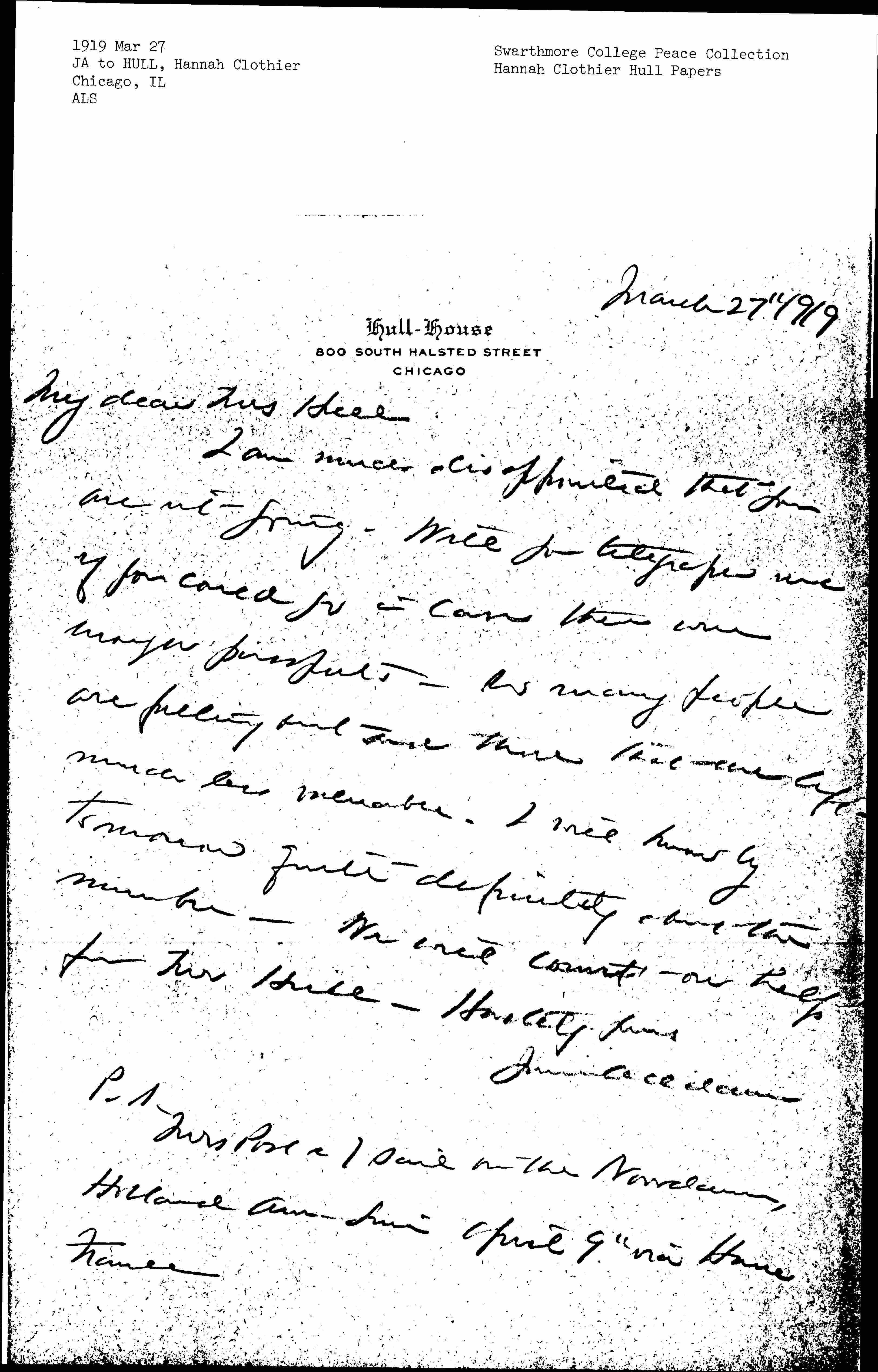 I am much disappointed that you are not going. Will you telegraph me if you could go in case there were enough passports. So many people are pulling out and those that are left much less valuable. I will know by tomorrow quite definitely about the number. We will count on help from Mr Hull -- Hastily yours