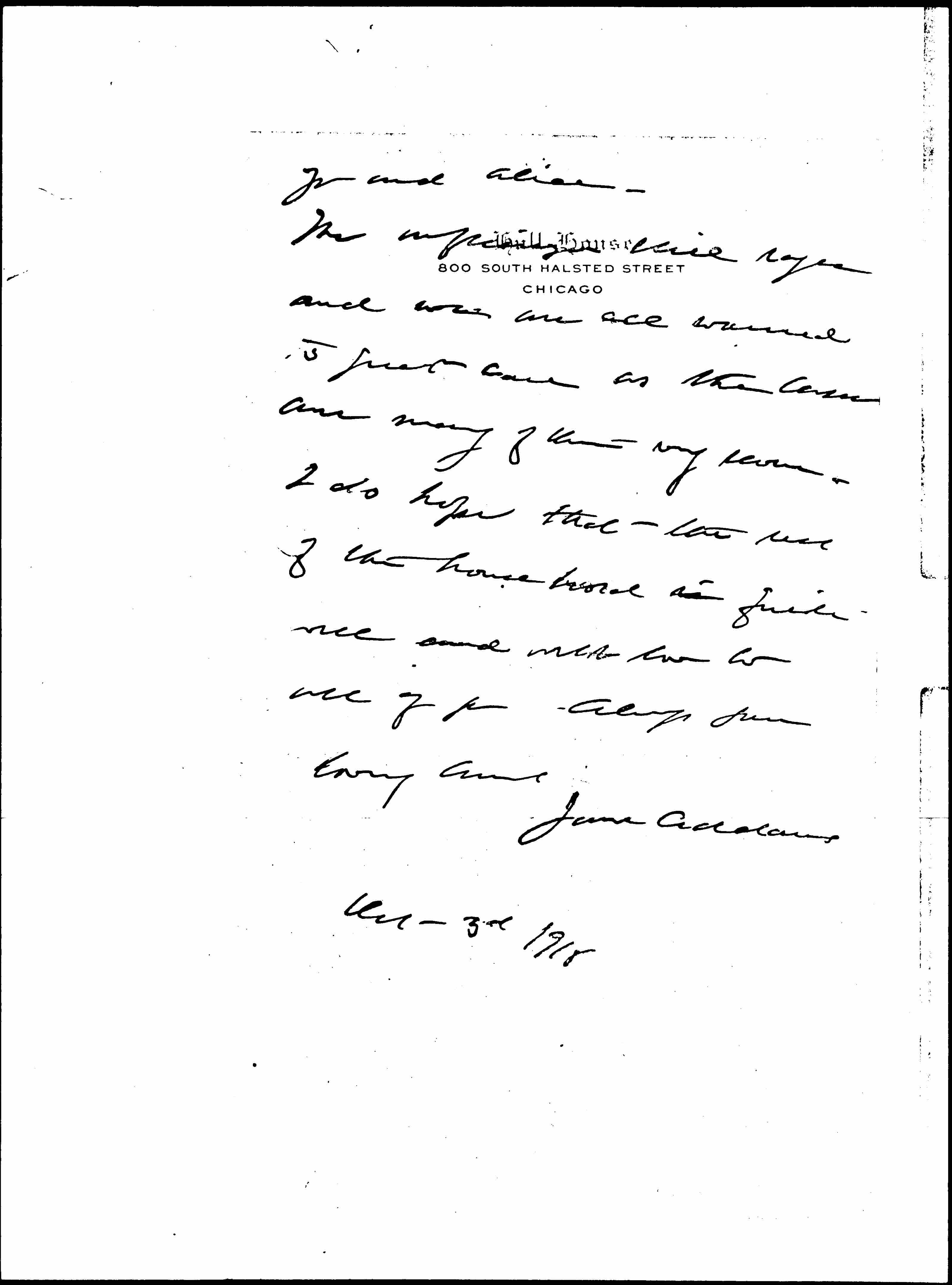 Unless I have a warning from you I will come out on Sunday afternoon (Oct. 6") leaving on the Ill. Central at four. I quite forgot when I telephoned that I was to speak in Jenkin Lloyd Jones pulpit on Sunday morning and that it had been advertised. I do hope you can stay over until Monday. I should be quite heart broken not to see [page 2] you and Alice.