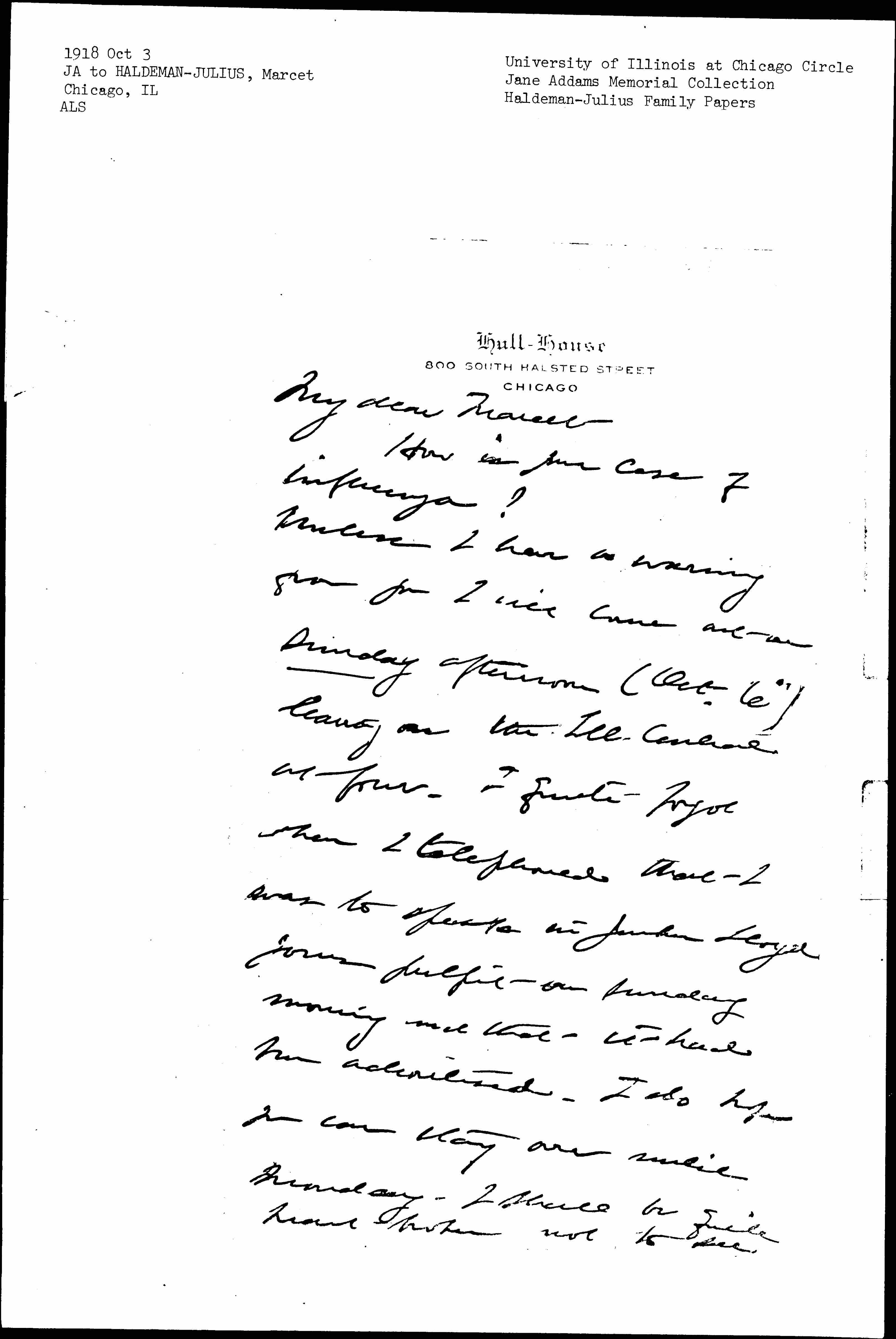 The influenza still rages and we are all warned to great care as the cases are many of them very severe. I do hope that the rest of the household is quite well and with love to all of you always your loving aunt