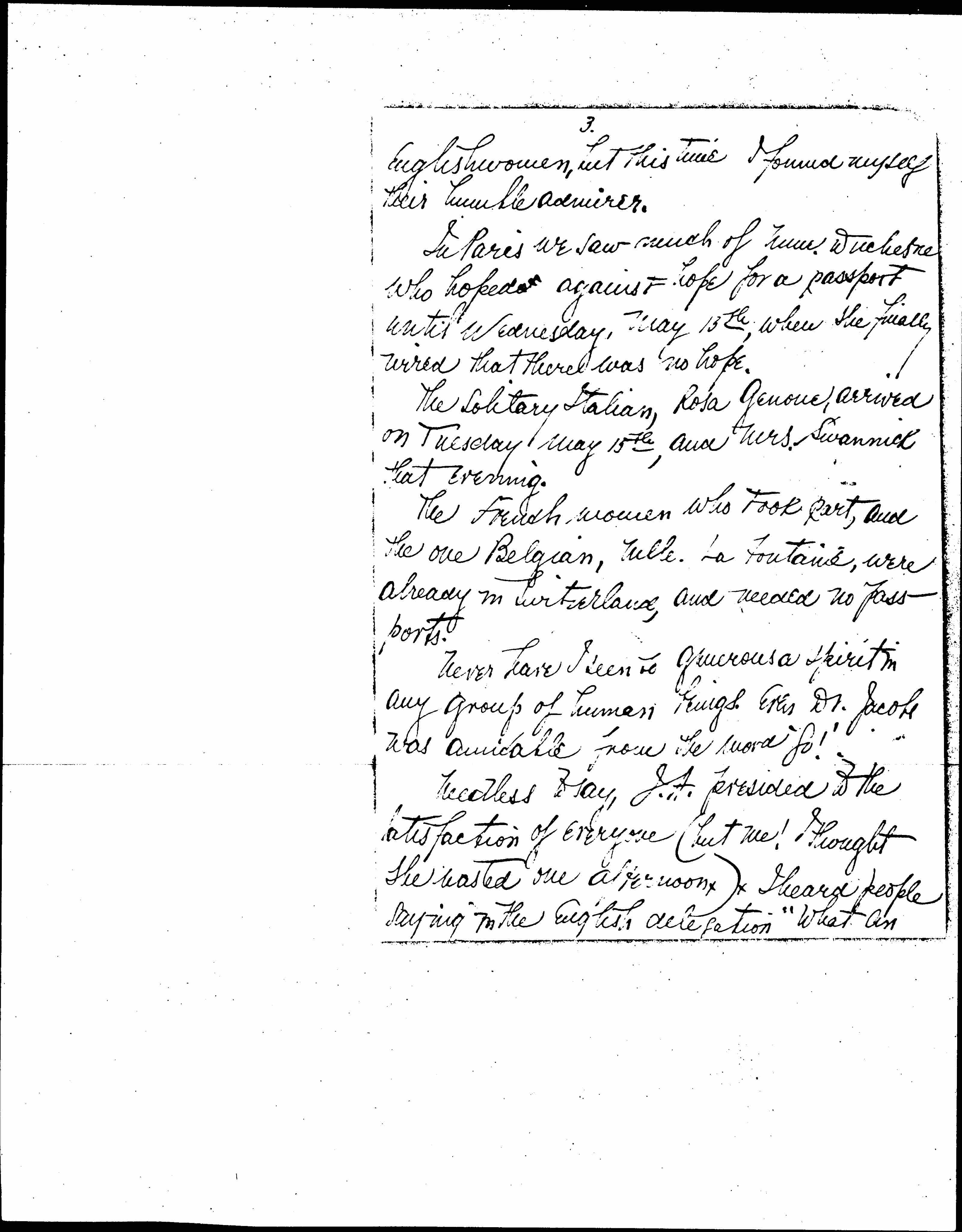 The French women who took part, and the one Belgian, Mlle. La Fontaine, were already in Switzerland, and needed no passports.