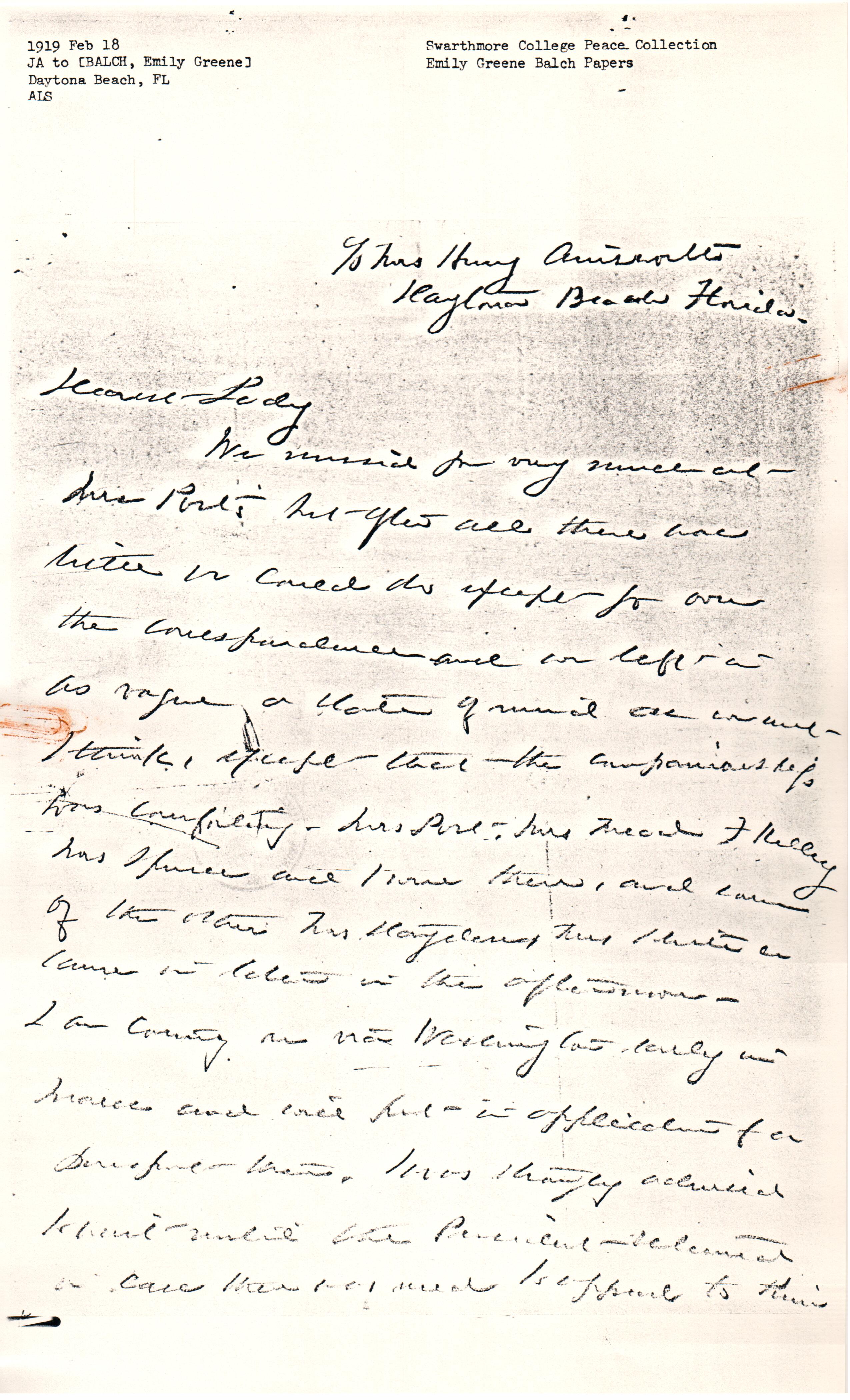 I do hope that you are getting better fast, it is surprising what a case of [illegible] can do. I meant to write [page 3] you at Atlantic City but I scurried off to Baltimore immediately after the meeting at Mrs Post's and Mary Smith and I came on here.
