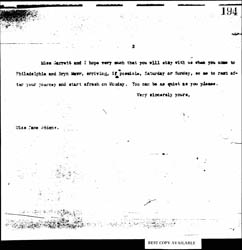 Miss Garrett and I hope very much that you will stay with us when you come to Philadelphia and Bryn Mawr, arriving, if possible, Saturday or Sunday, so as to rest after your journey and start afresh on Monday. You can be as quiet as you please.
