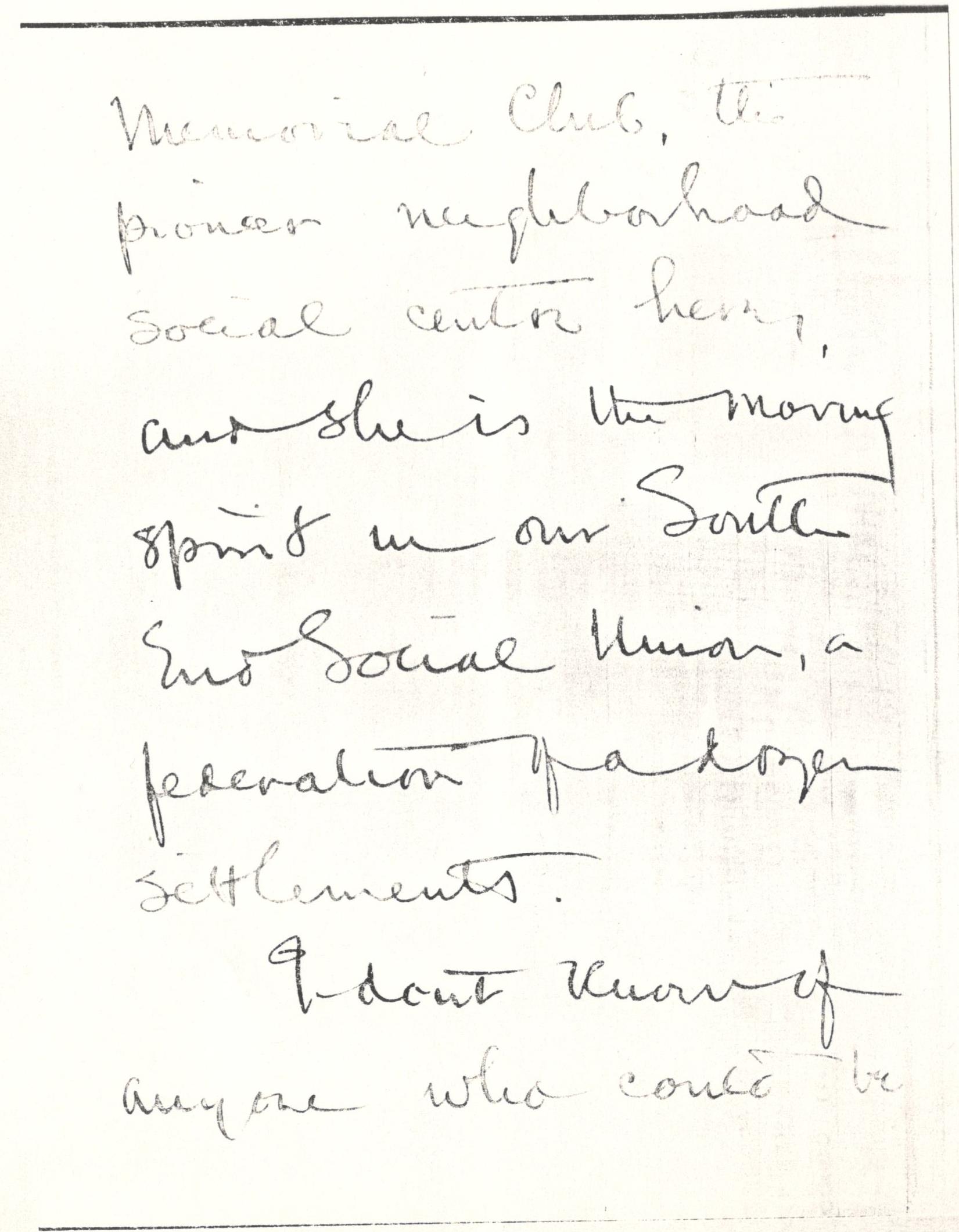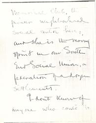 Miss Coolidge is one of the leaders in the Ellis [page 2] Memorial Club, the pioneer neighborhood social center here, and she is the moving spirit in our South End Social Union, a federation of a dozen settlements.