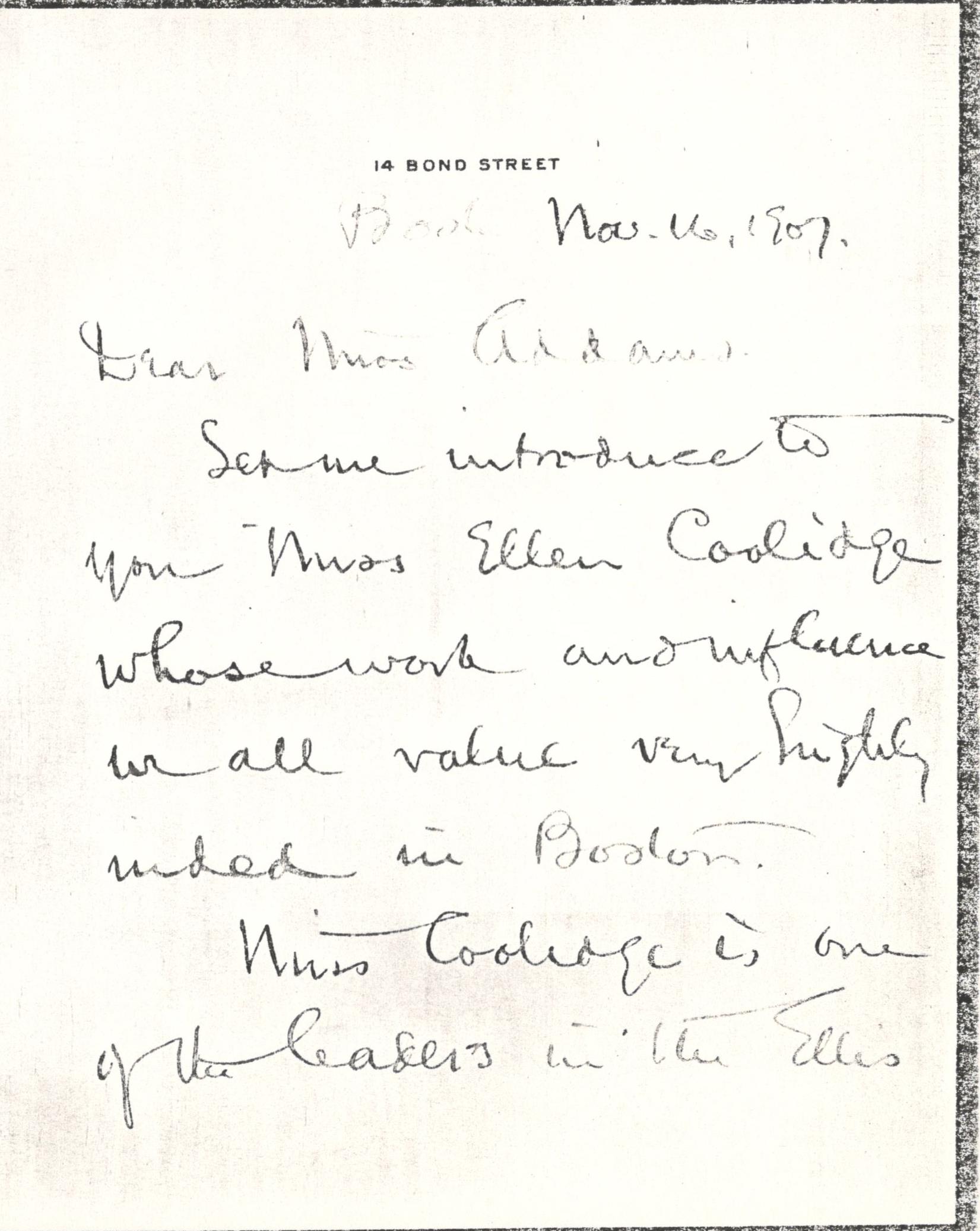 Let me introduce to you Miss Ellen Coolidge whose work and influence we all value very highly indeed in Boston.