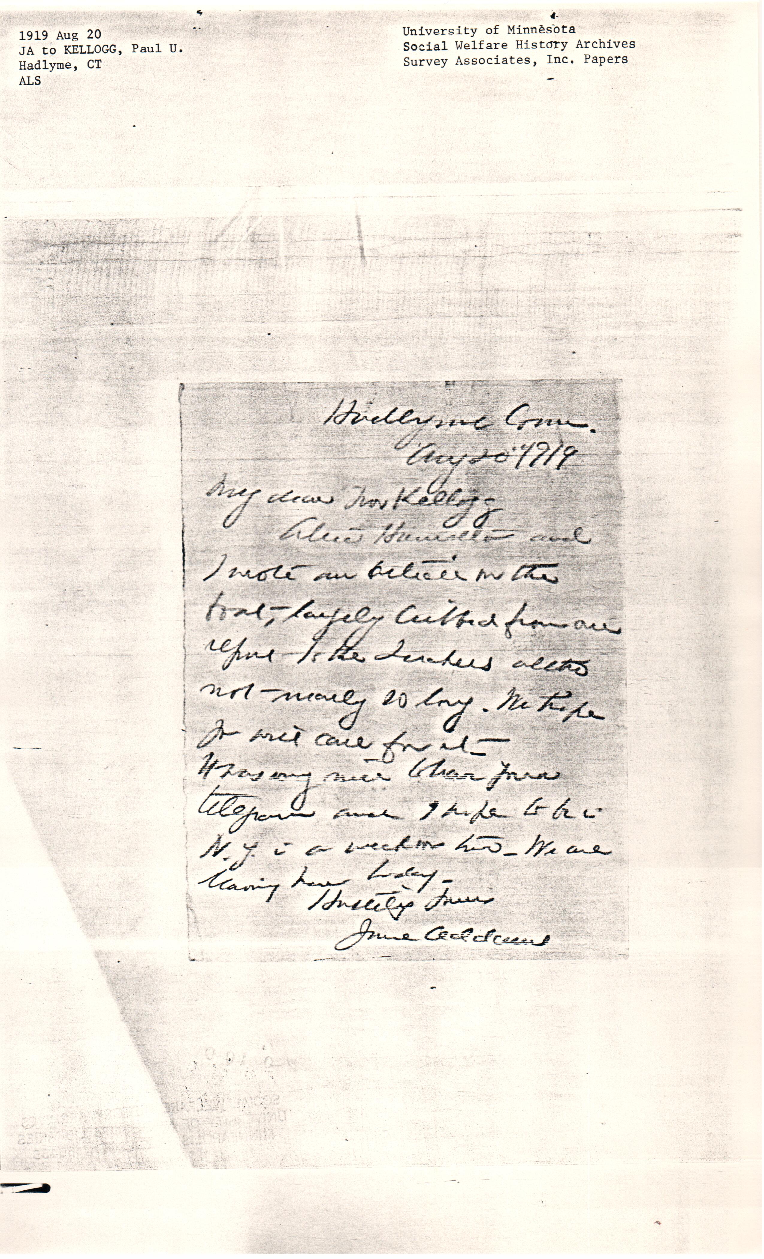 Alice Hamilton and I wrote an article on the boat, largely cribbed from our report to the Quakers [although] not nearly so long. We hope you will care for it.
