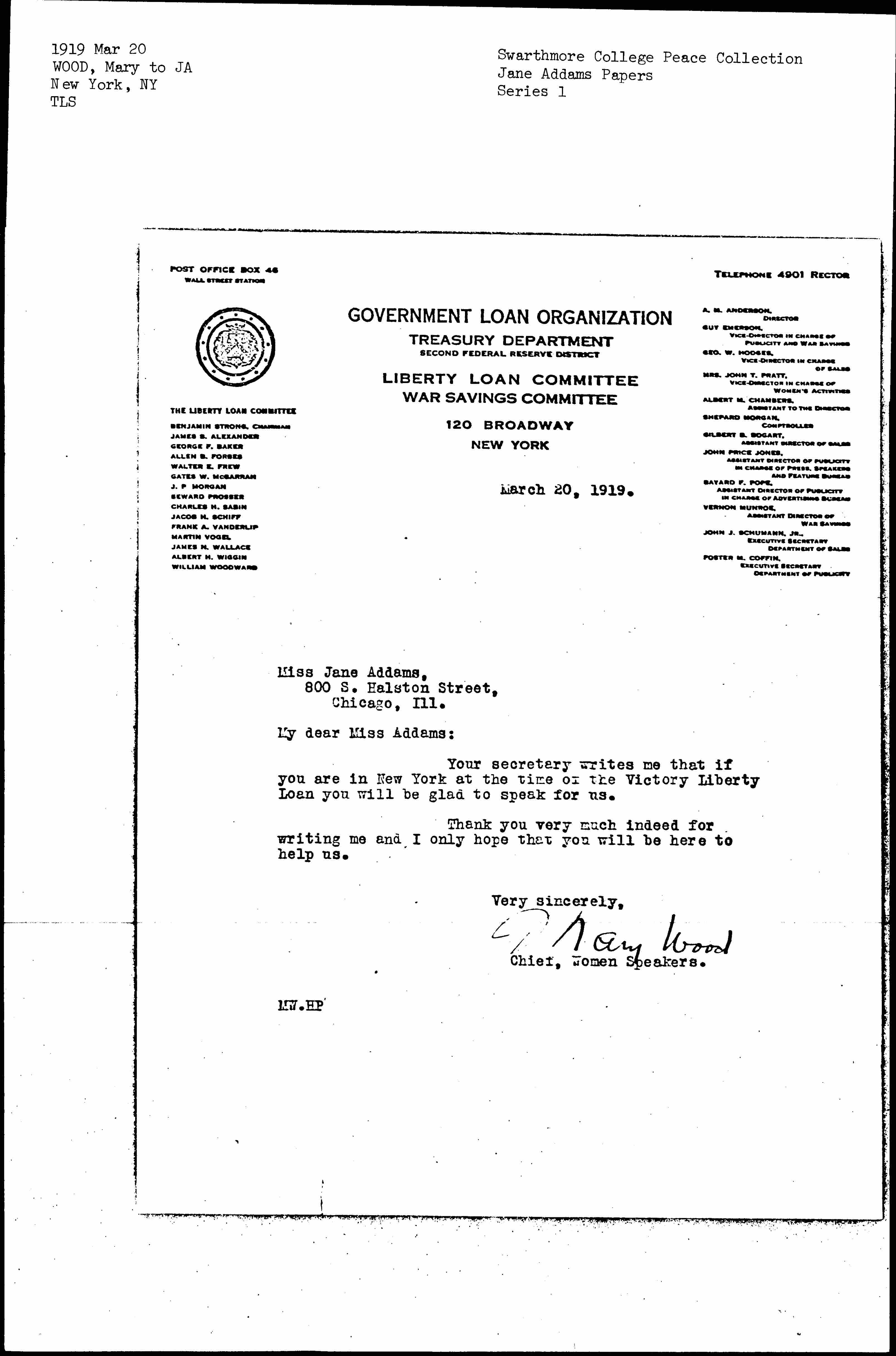 Your secretary writes me that if you are in New York at the time of the Victory Liberty Loan you will be glad to speak for us.