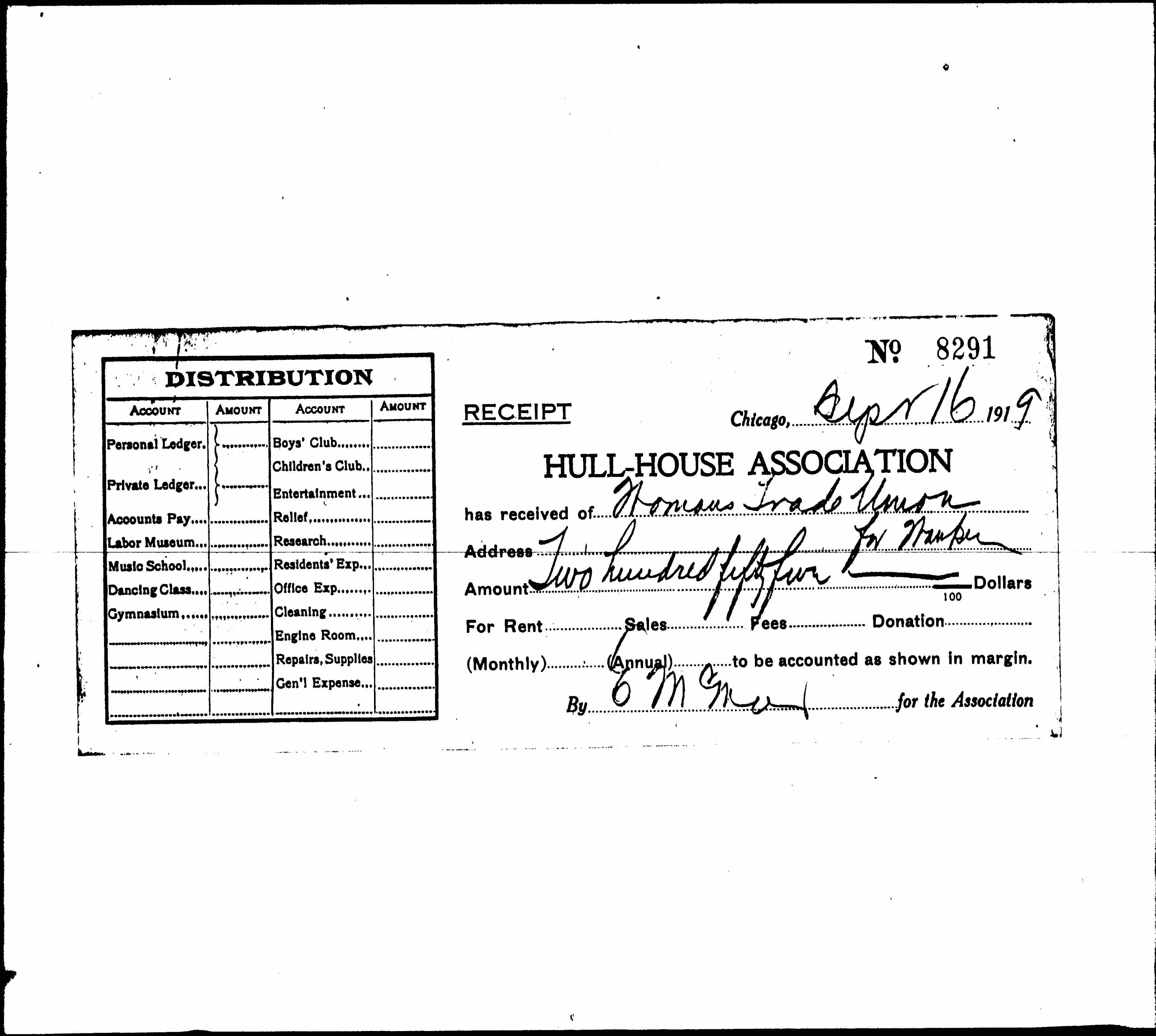 has received of ↑Woman's Trade Union for [illegible]↓