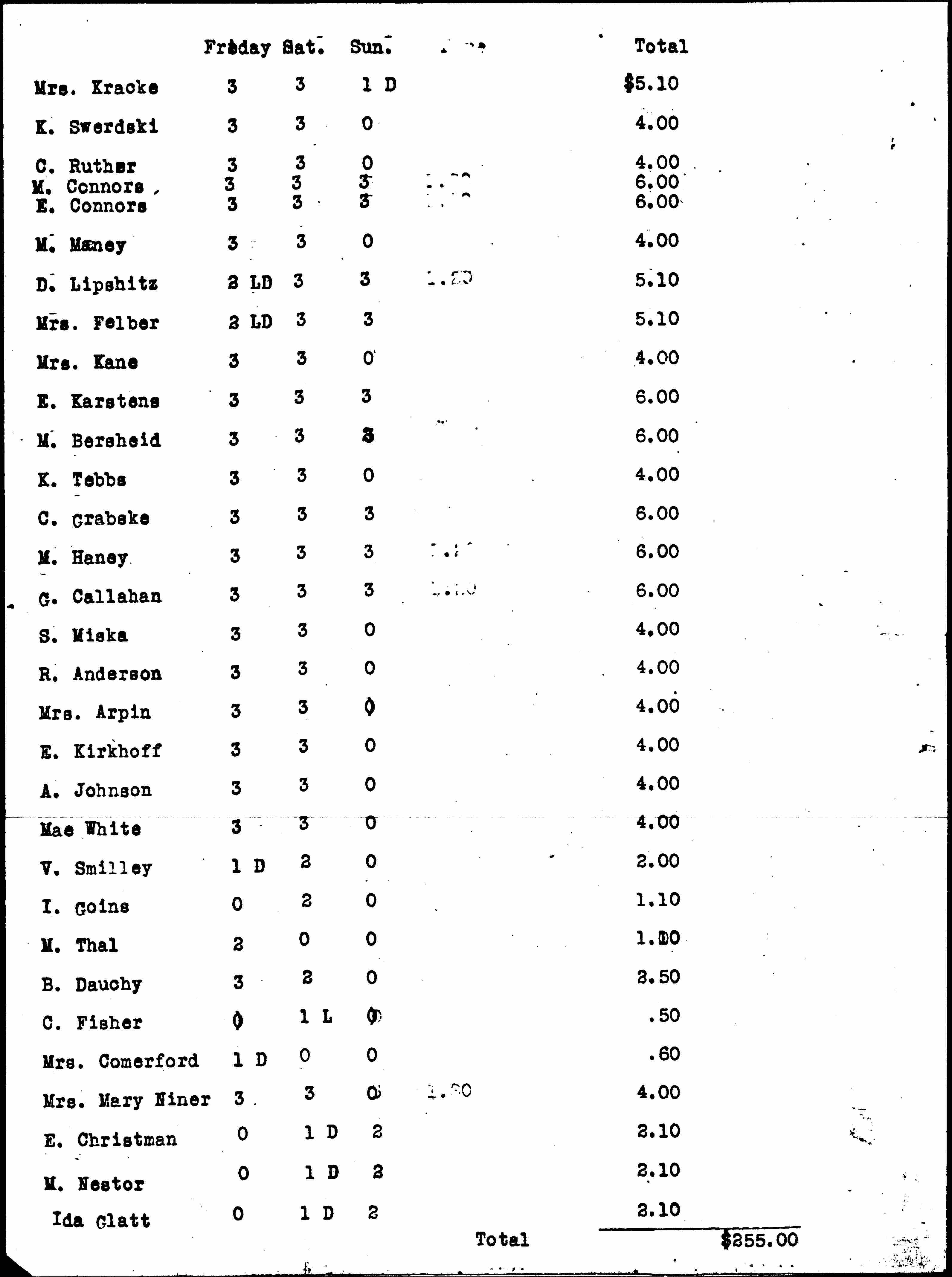 Total $255.00