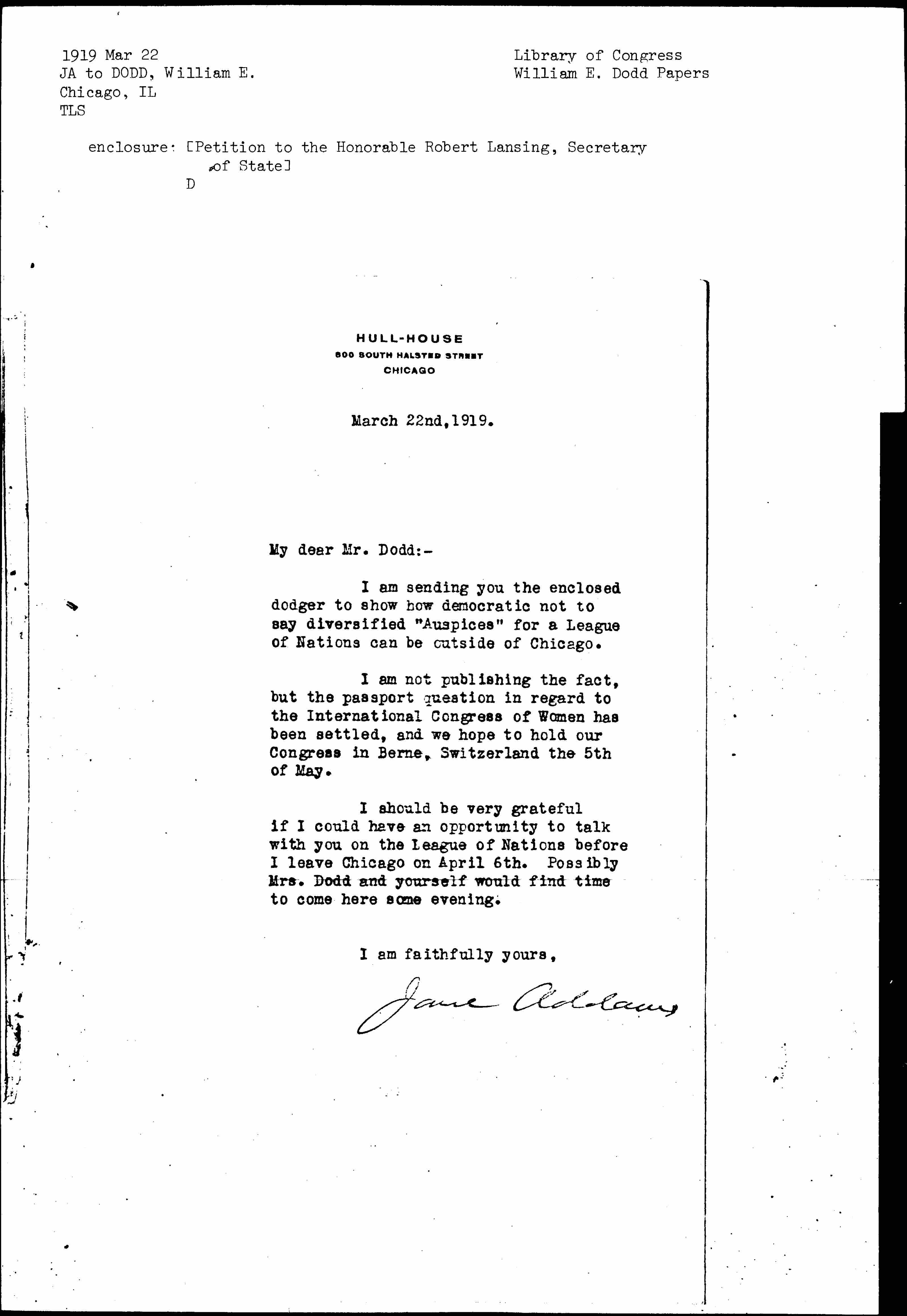Jane Addams [signed]