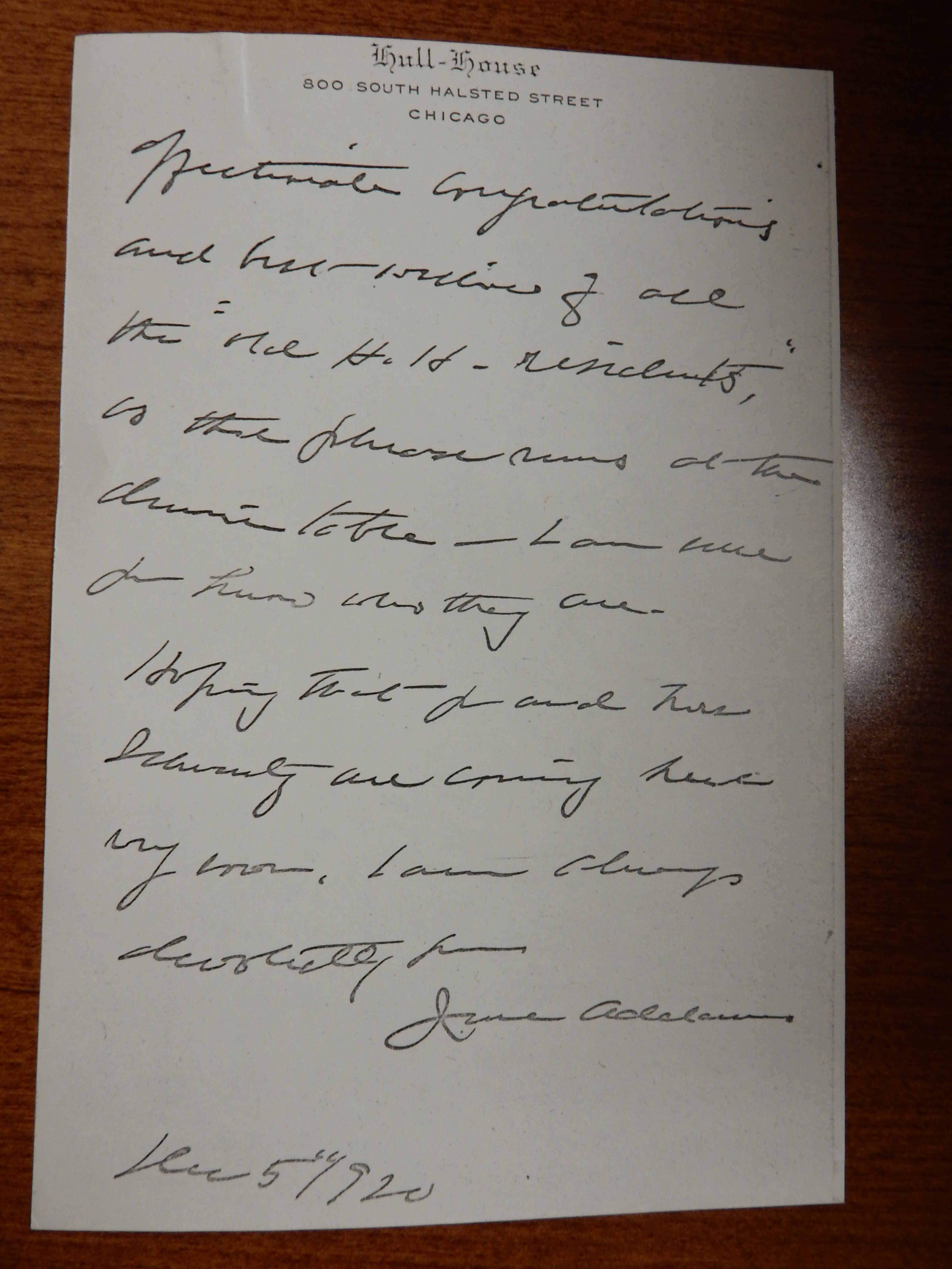 We have been very slow in selecting your wedding present from Hull-House, partly because there was much discussion as to which one of Miss Benedict’s pictures residents preferred.