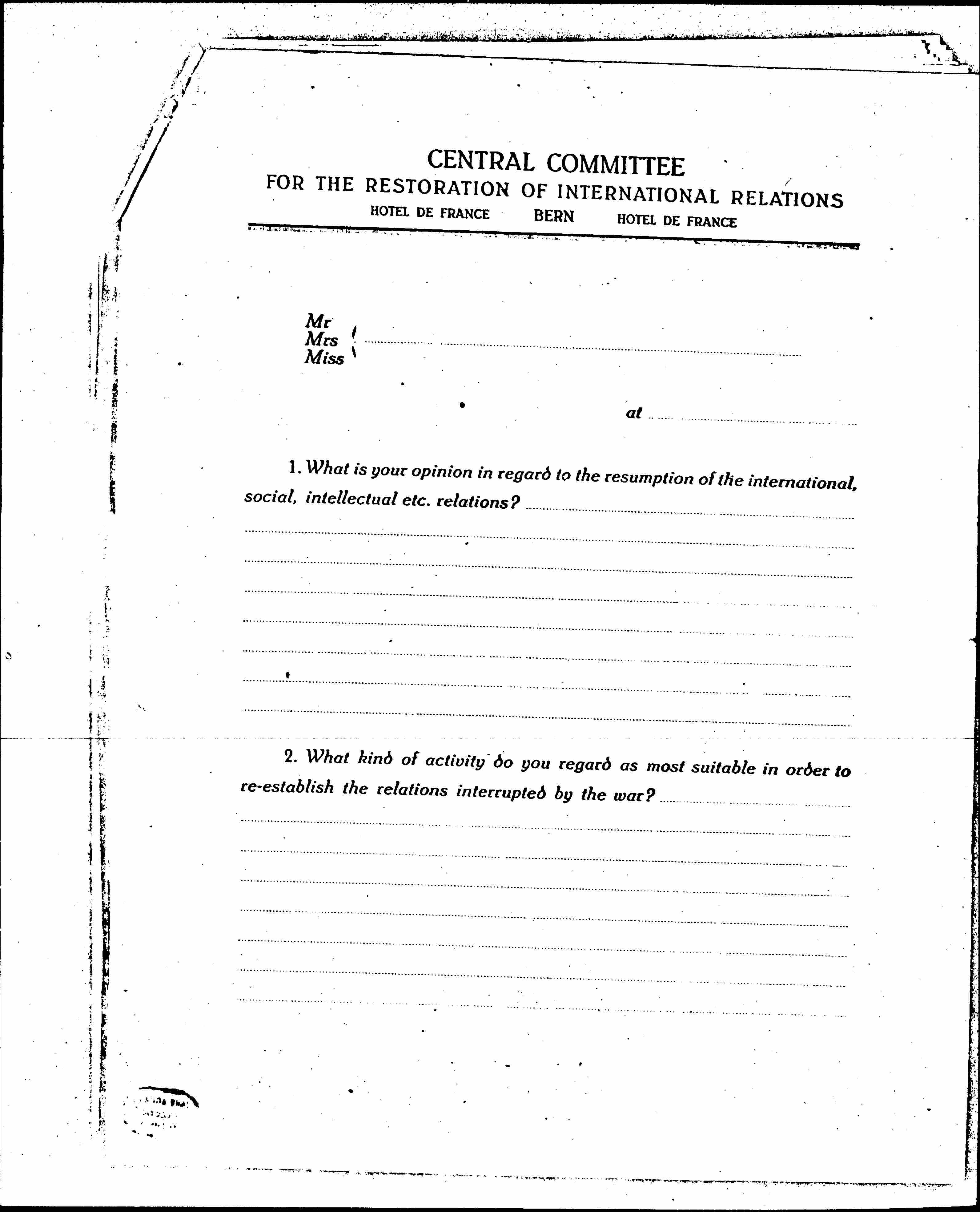 Sir/(Madam)Every thinking man and woman must admit that after the cessation of hostilities a resumption of international relations will become a vital necessity.