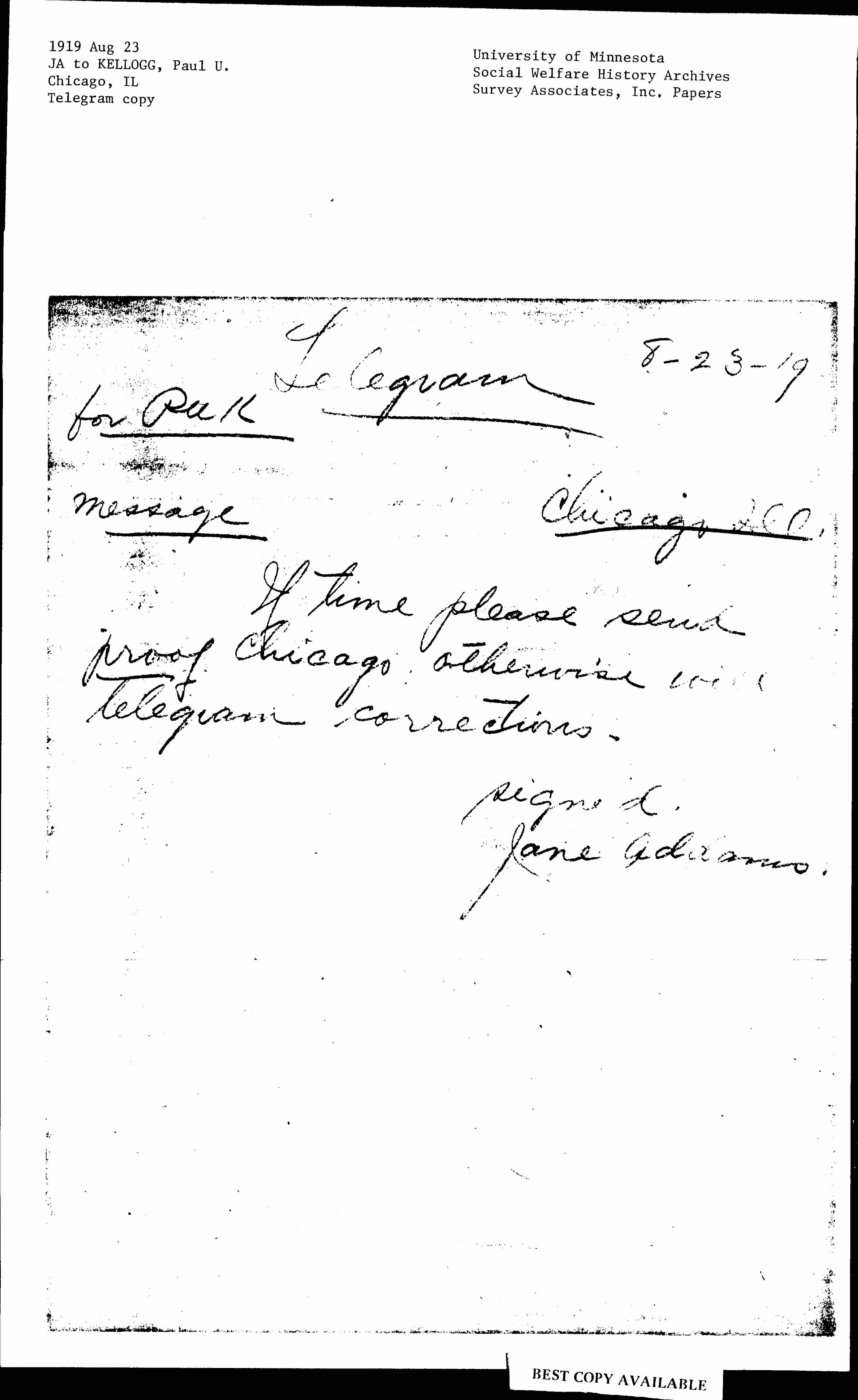 If time please send proof Chicago otherwise will telegram corrections.