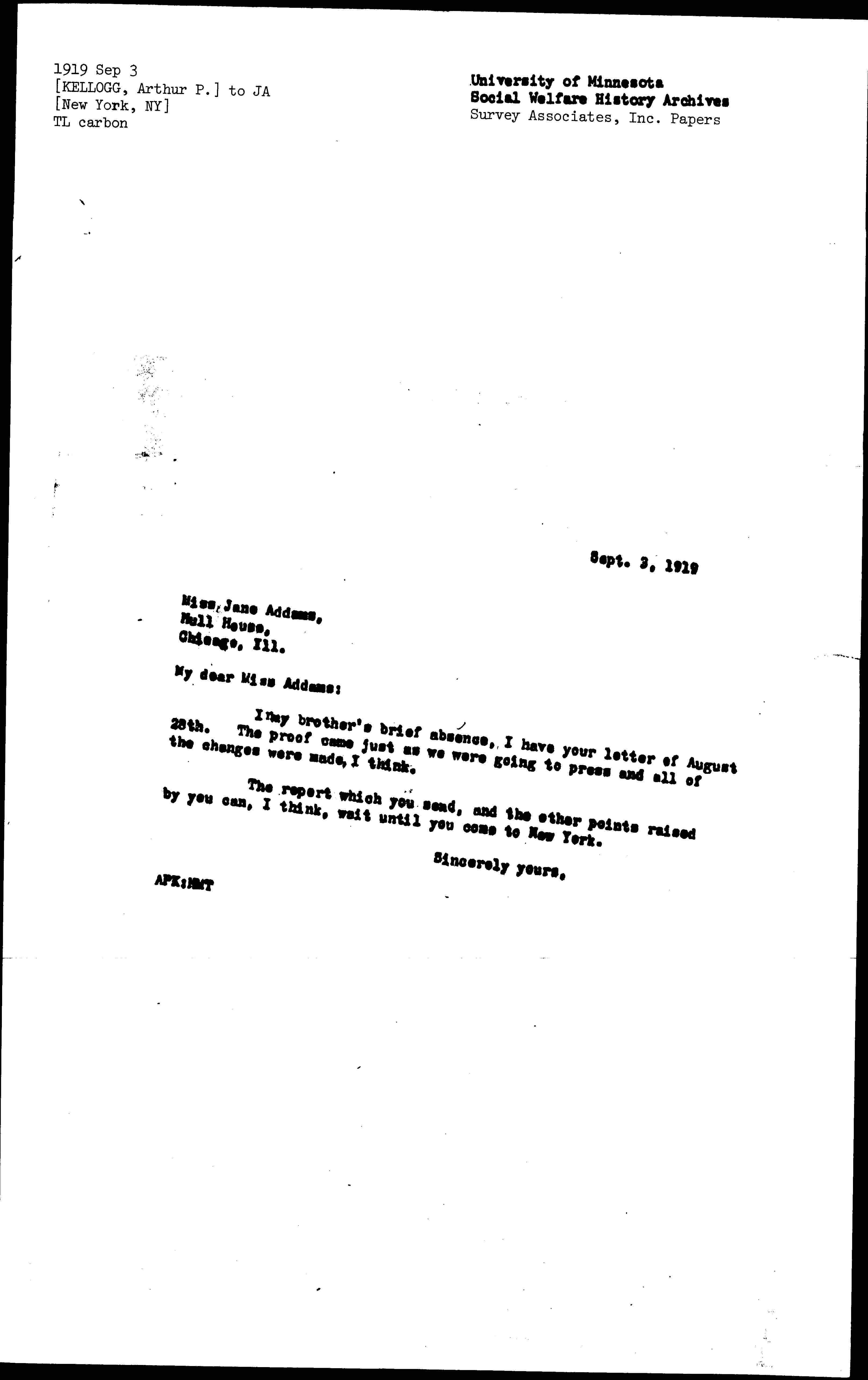 In my brother's brief absence, I have your letter of August 28th. The proof came just as we were going to press and all of the changes were made, I think.