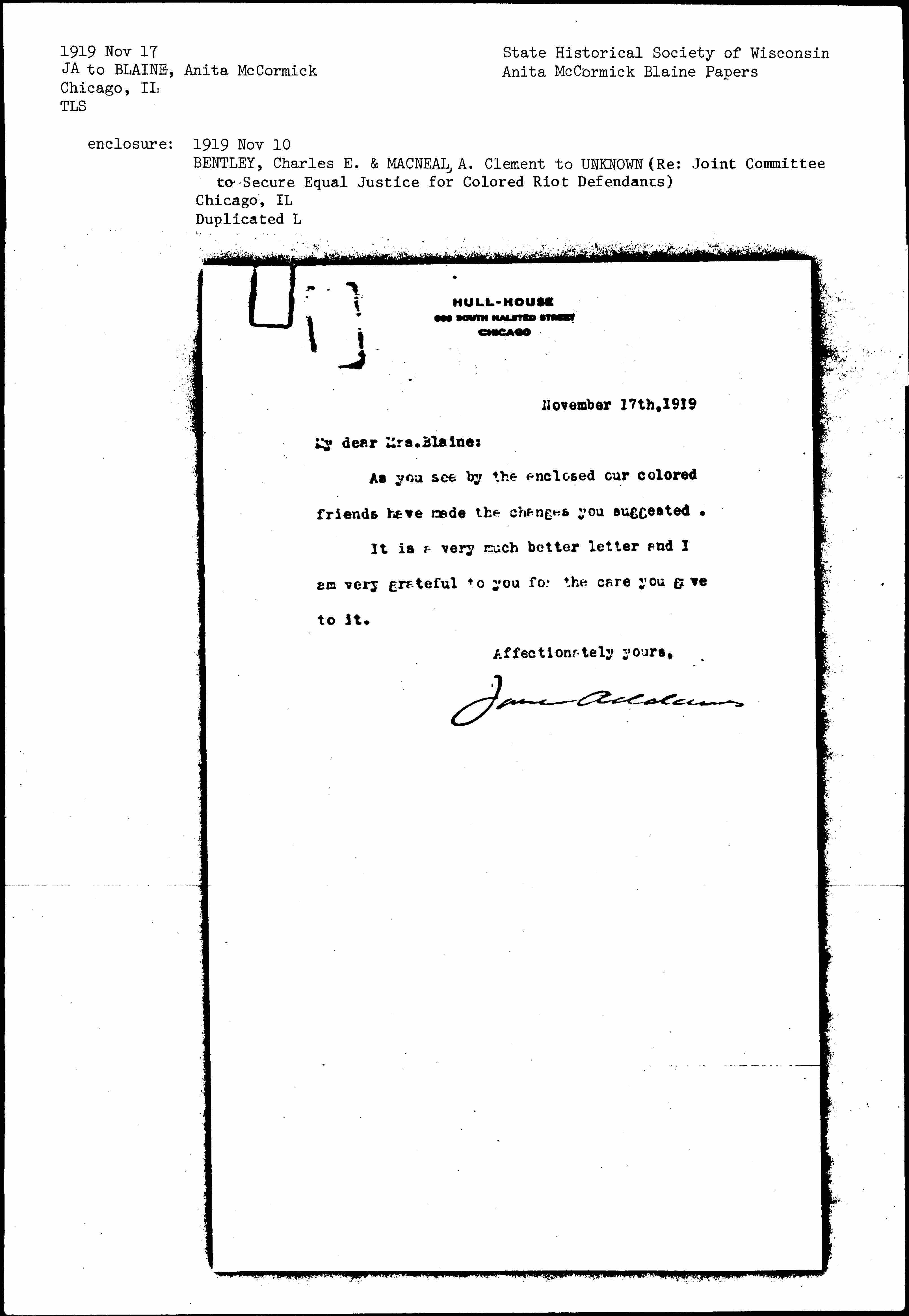 As you see by the enclosed our colored friends have made the changes you suggested.