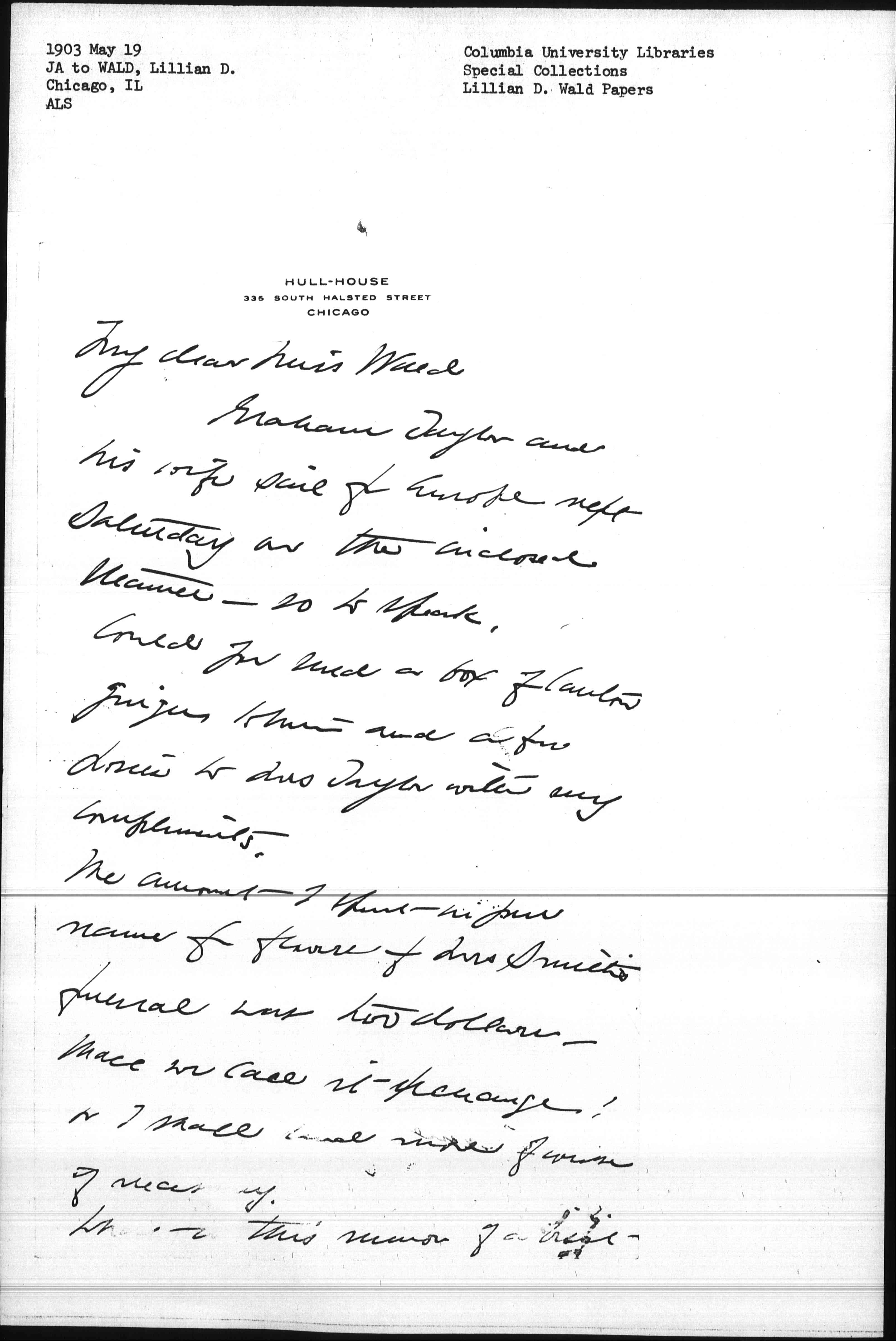 My dear Miss Wald
