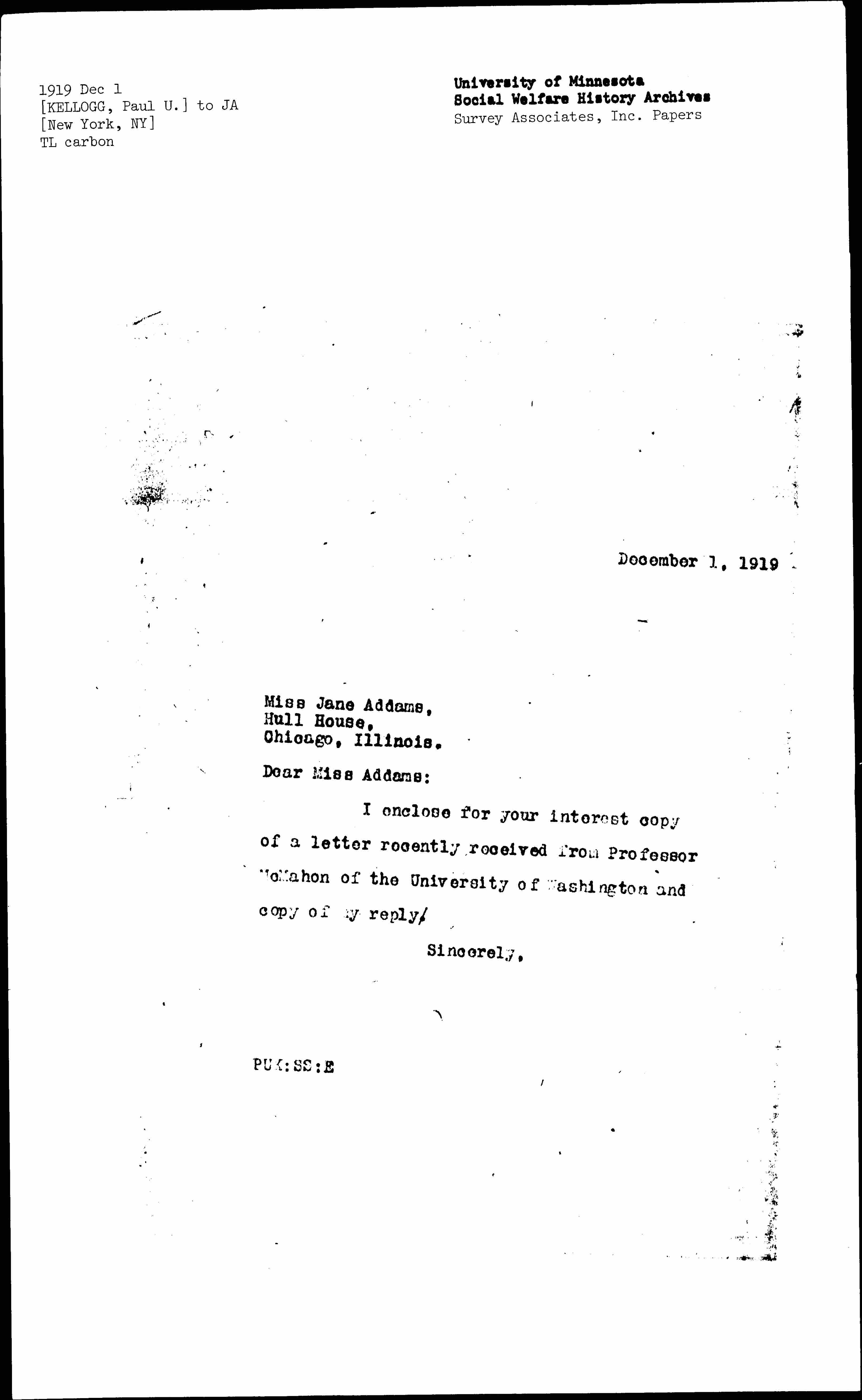 I enclose for your interest copy of a letter recently received from Professor McMahon of the University of Washington and copy of my reply.