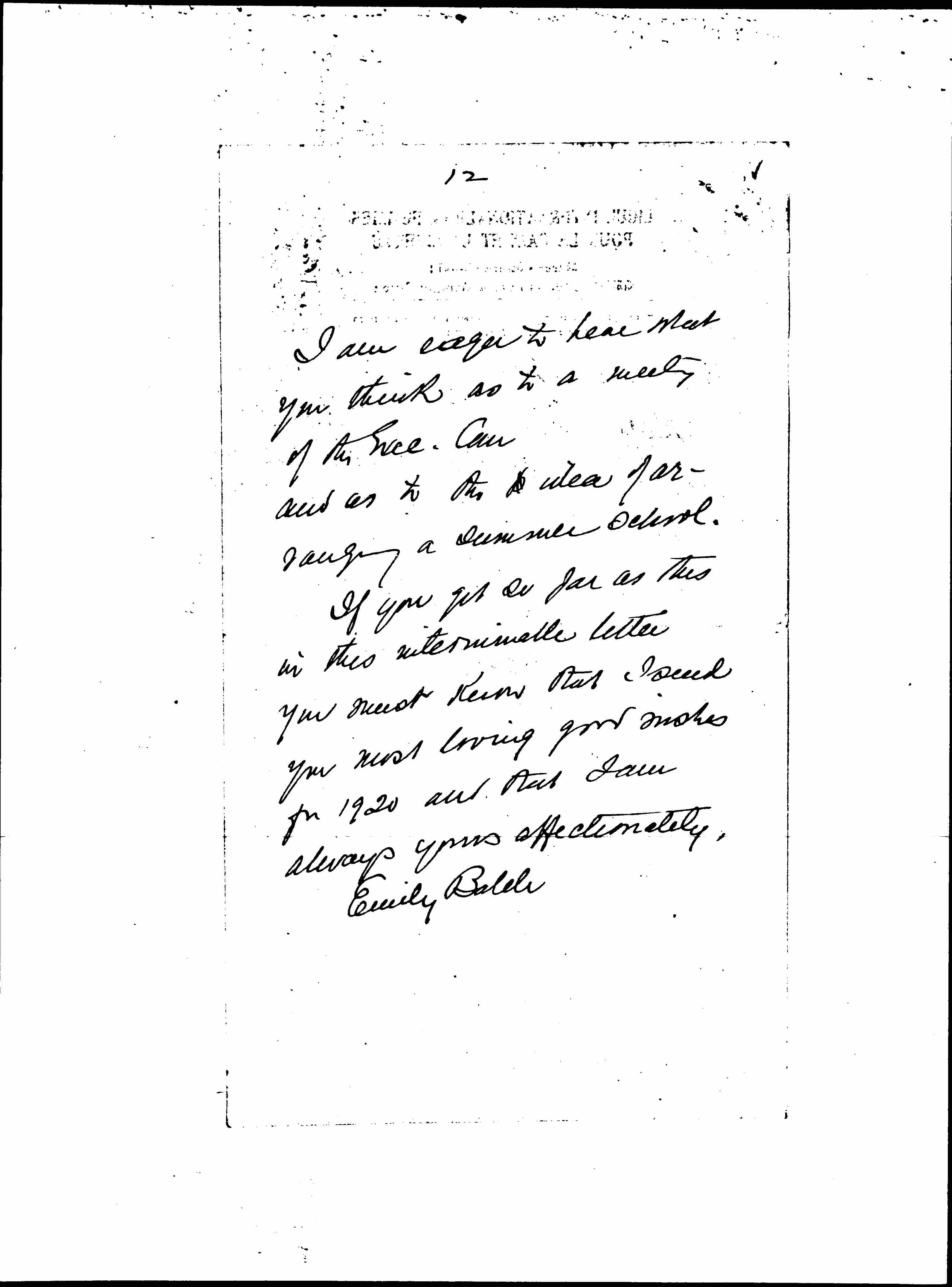 Miss Wald has written me a letter just rec'd -- the first since Zurich -- and she speaks [page 5] of an approaching meeting at Henry St of our clan. I wish I could be with you. It is too late to send my greetings and my gratitude to all who are supporting this outpost. Miss Nichols seems wonderfully active. She and Mrs. Mead both write occasionally.