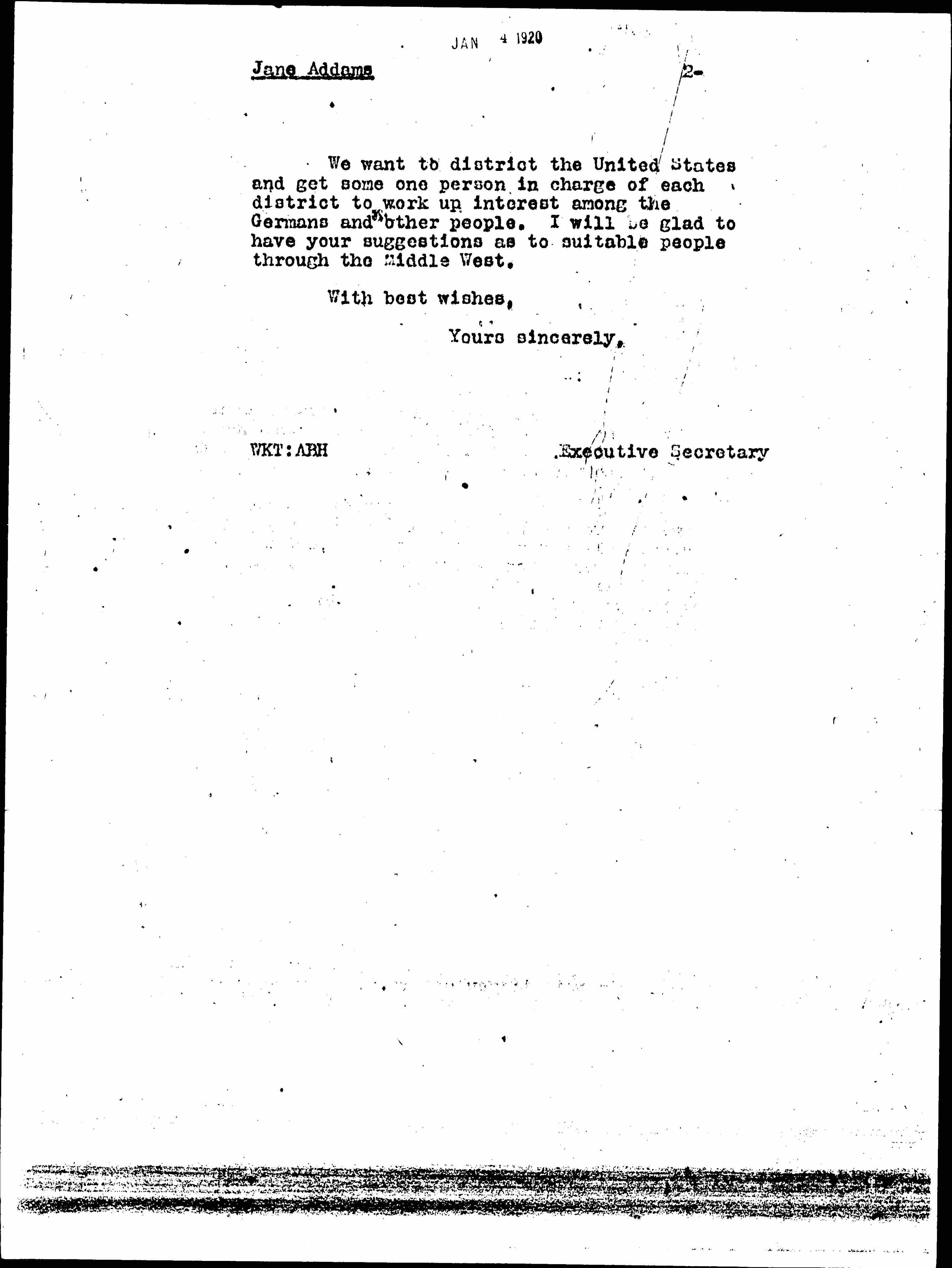 We want to district the United States and get some one person in charge of each district to work up interest among the Germans and other people. I will be glad to have your suggestions as to suitable people through the Middle West.