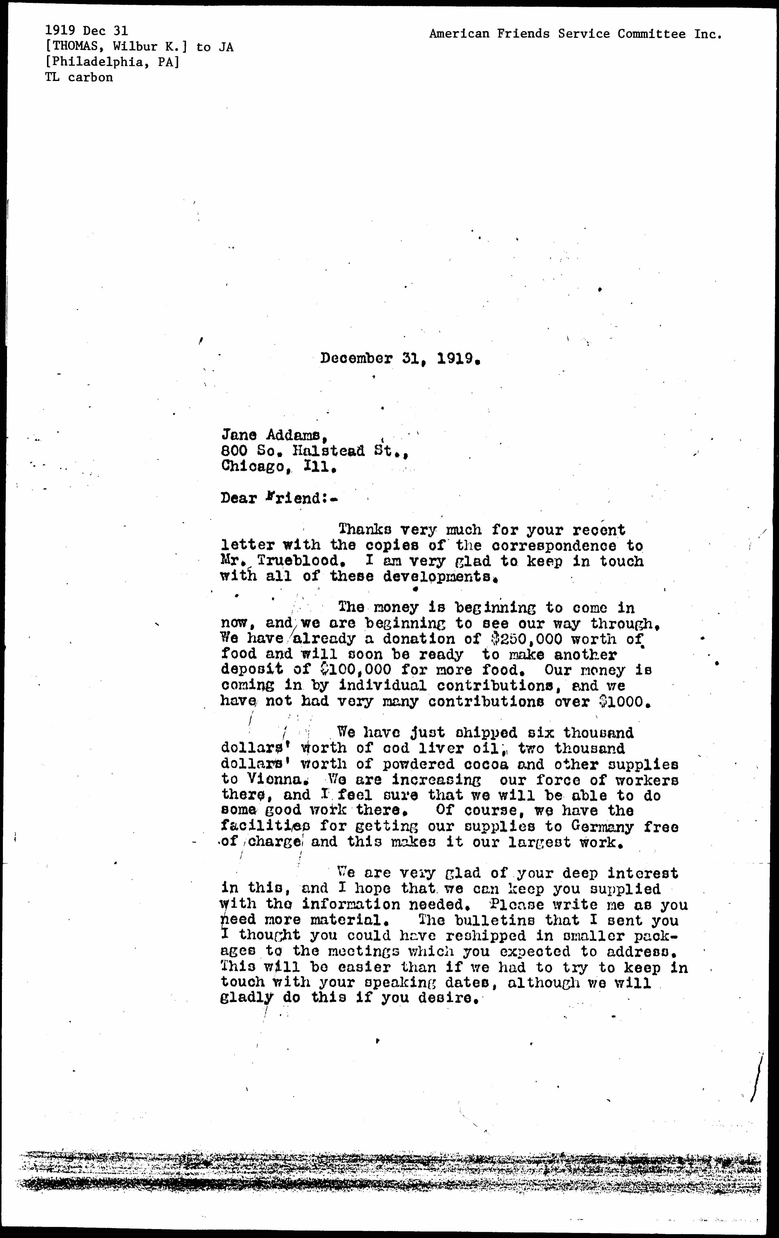 We have just shipped six thousand dollars' worth of cod liver oil, two thousand dollars' worth of powdered cocoa and other supplies to Vienna. We are increasing our force of workers there, and I feel sure that we will be able to do some good work there. Of course, we have the facilities for getting our supplies to Germany free of charge and this makes it our largest work.