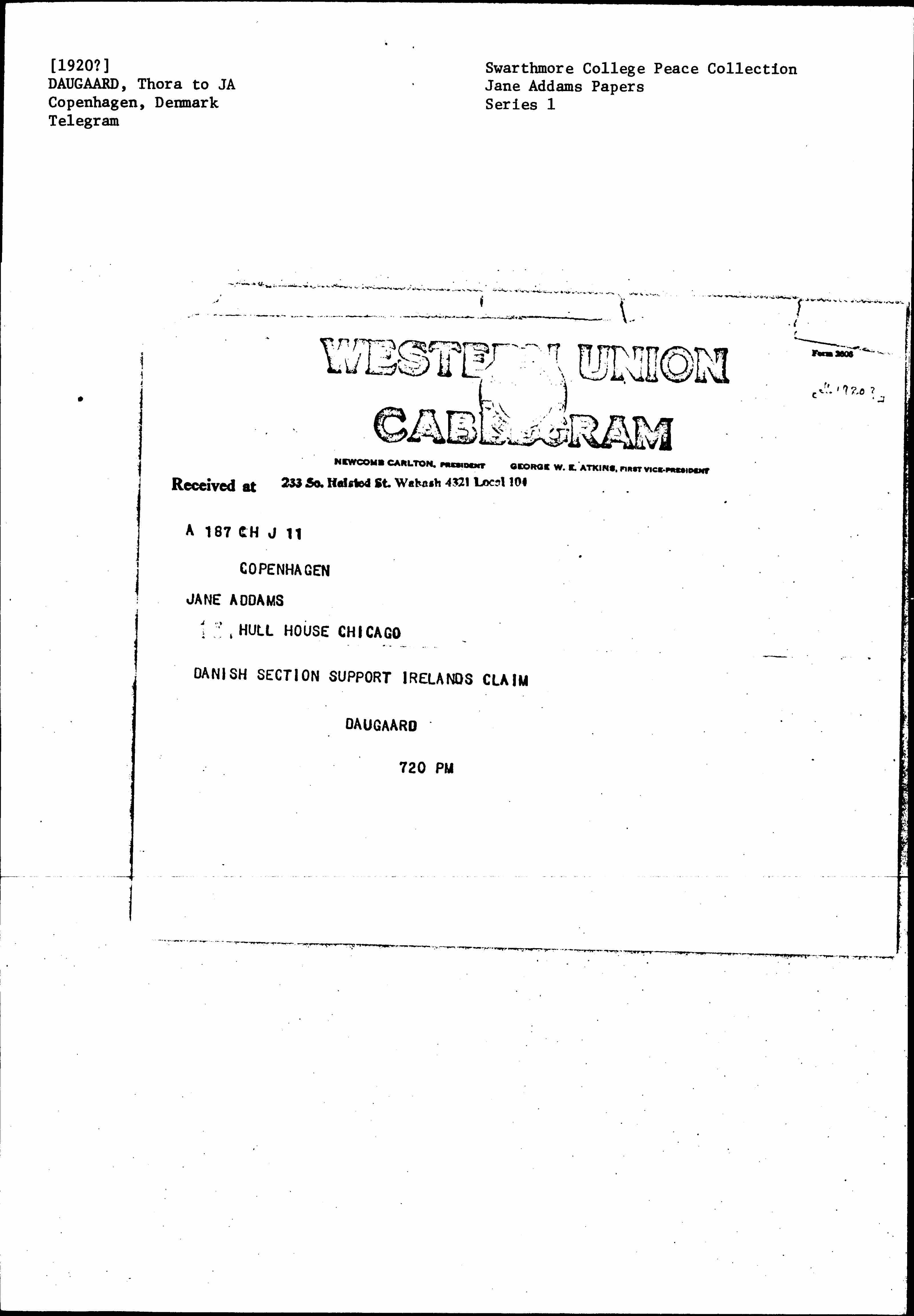 DANISH SECTION SUPPORT IRELANDS CLAIM
