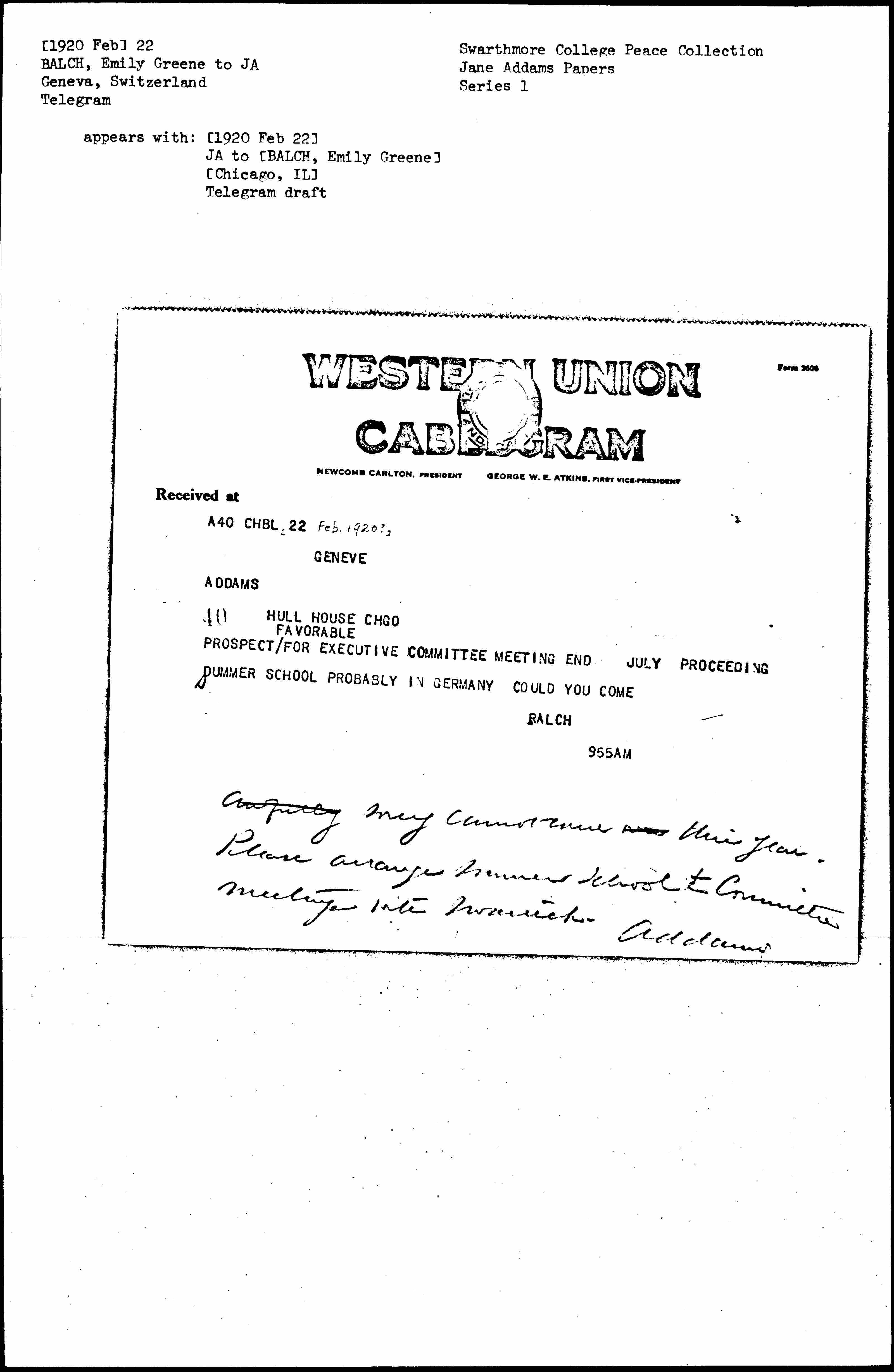 PROSPECT ↑FAVORABLE↓ FOR EXECUTIVE COMMITTEE MEETING END JULY PROCEEDING SUMMER SCHOOL PROBABLY IN GERMANY COULD YOU COME