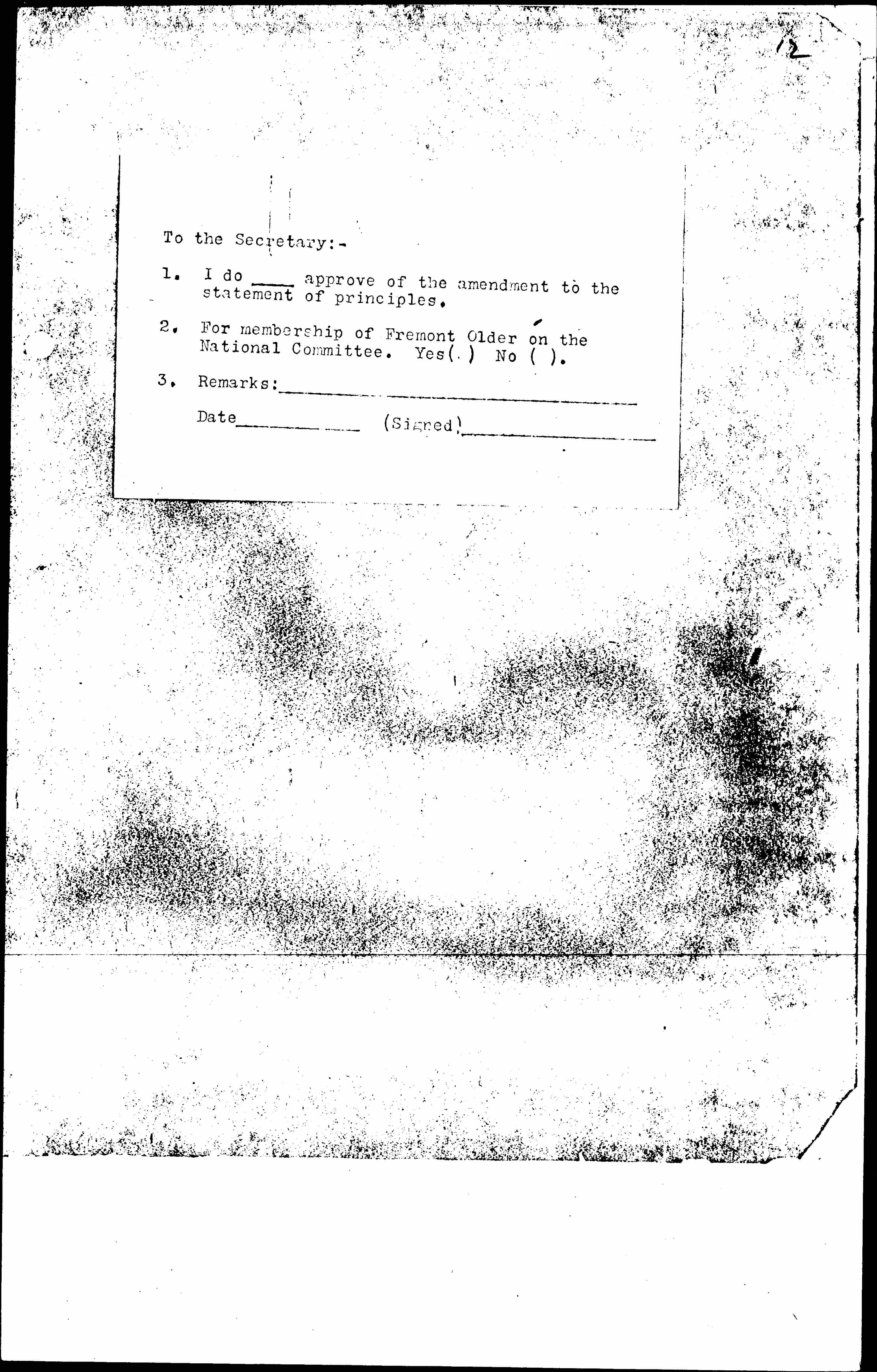 2. For membership of Fremont Older on the National Committee. Yes ( ) No ( ).