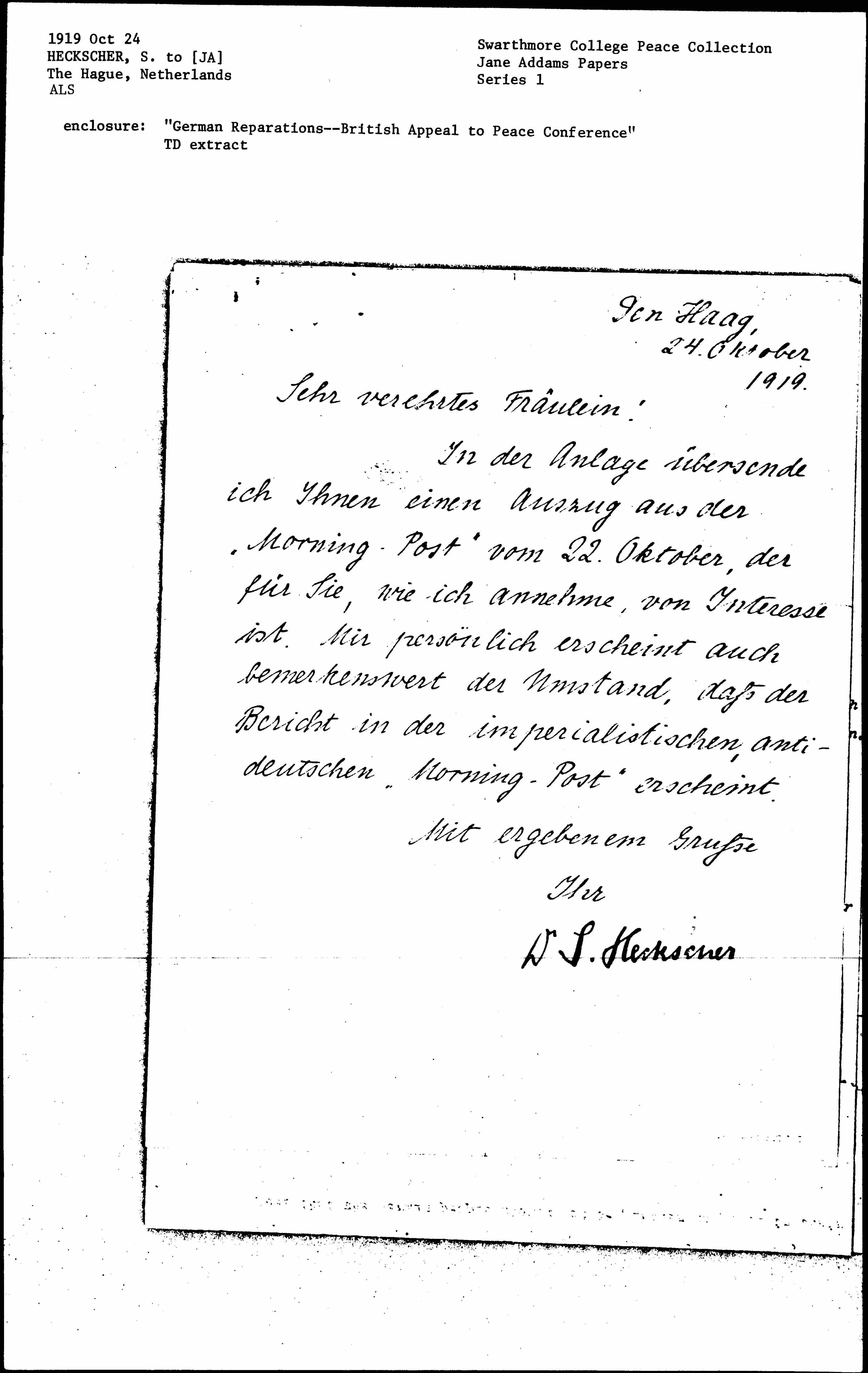 Attached I am sending you an excerpt from the “Morning Post” from October 22, which I suppose will be of interest to you. Also, to me personally, the fact [that] the report appears in the imperialist, anti-German “Morning Post” seems remarkable.