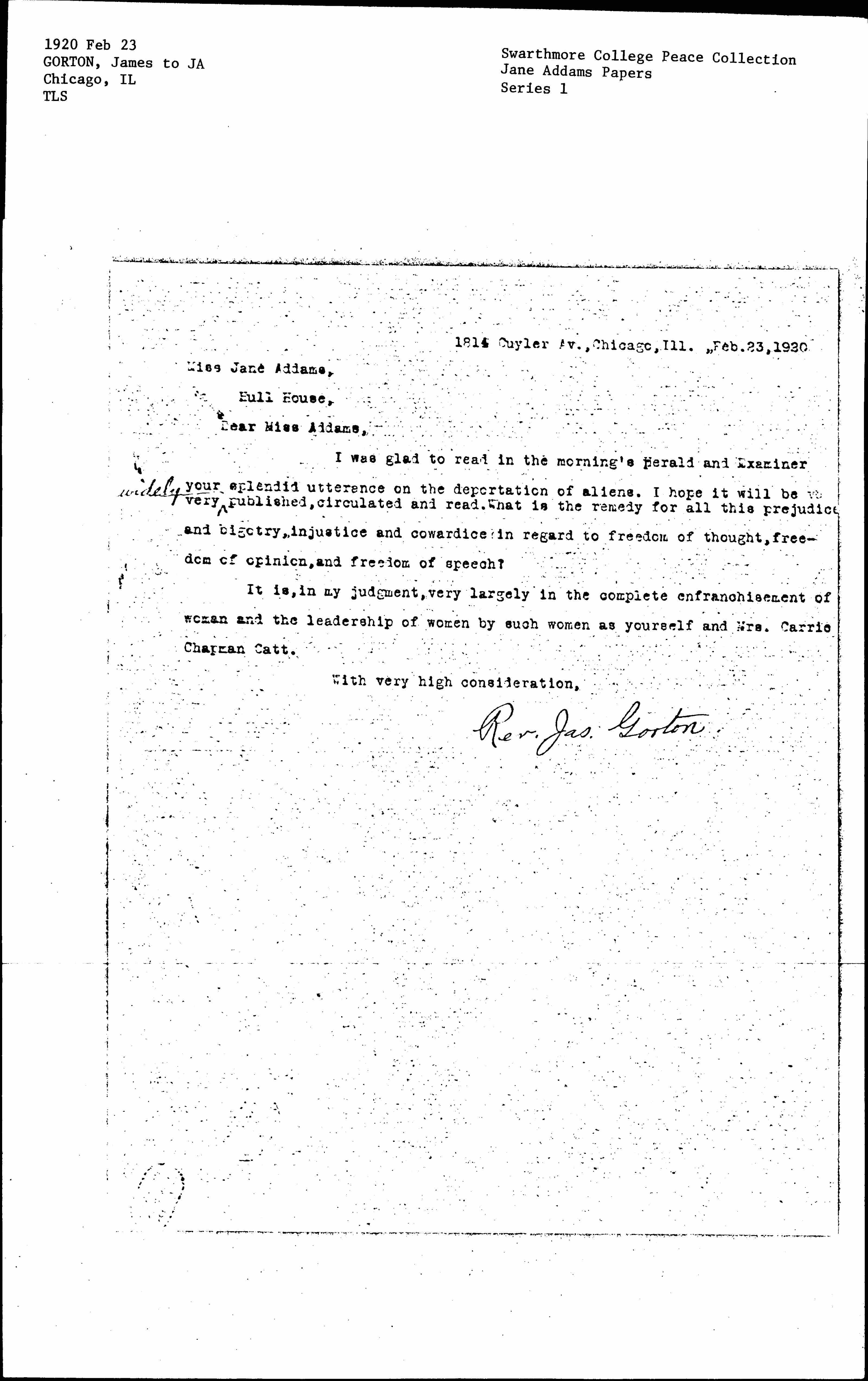 Dear Miss Addams,