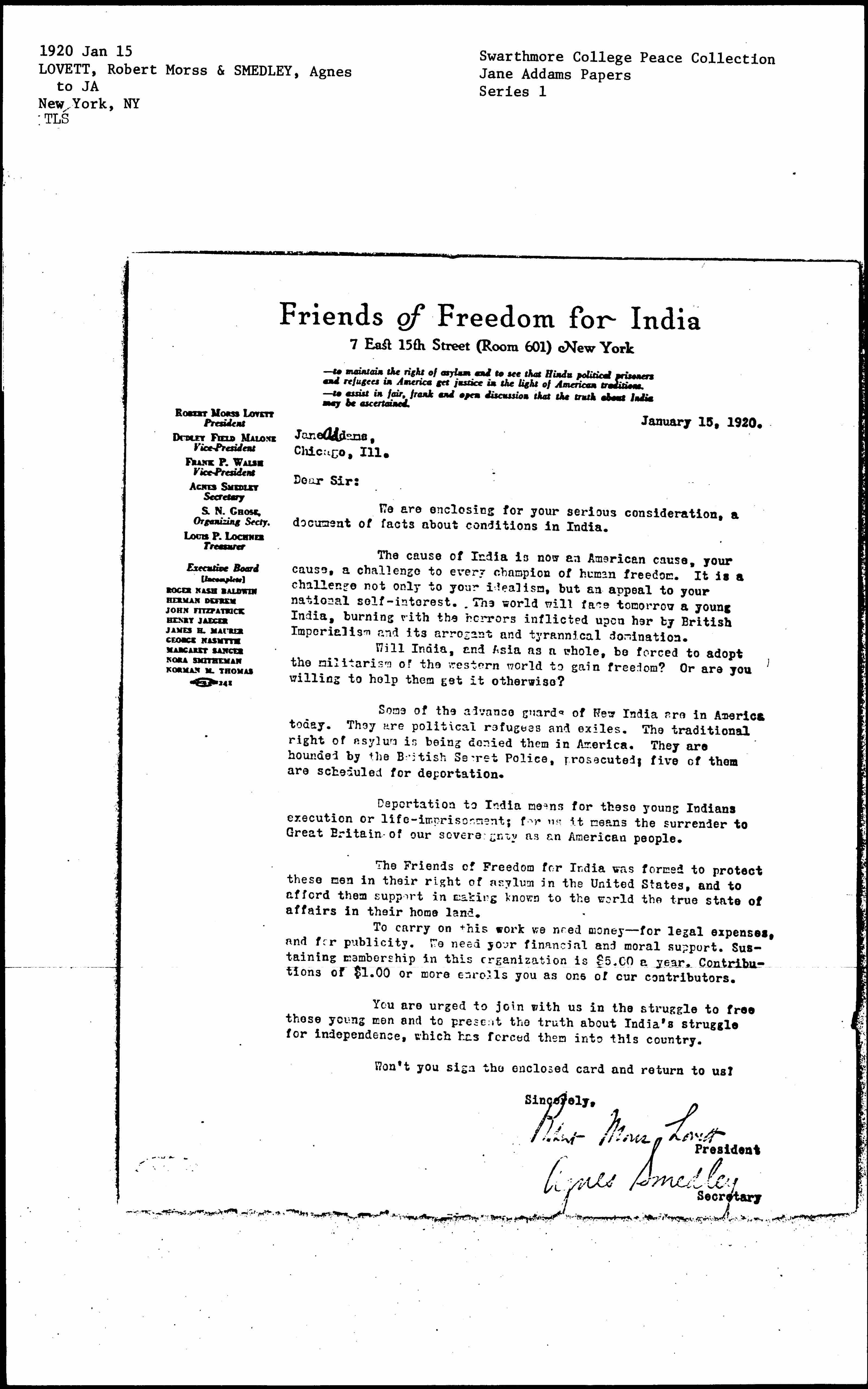 The Friends of Freedom for India was formed to protect these men in their right of asylum in the United States, and to afford them support in making known to the world the true state of affairs in their home land.
