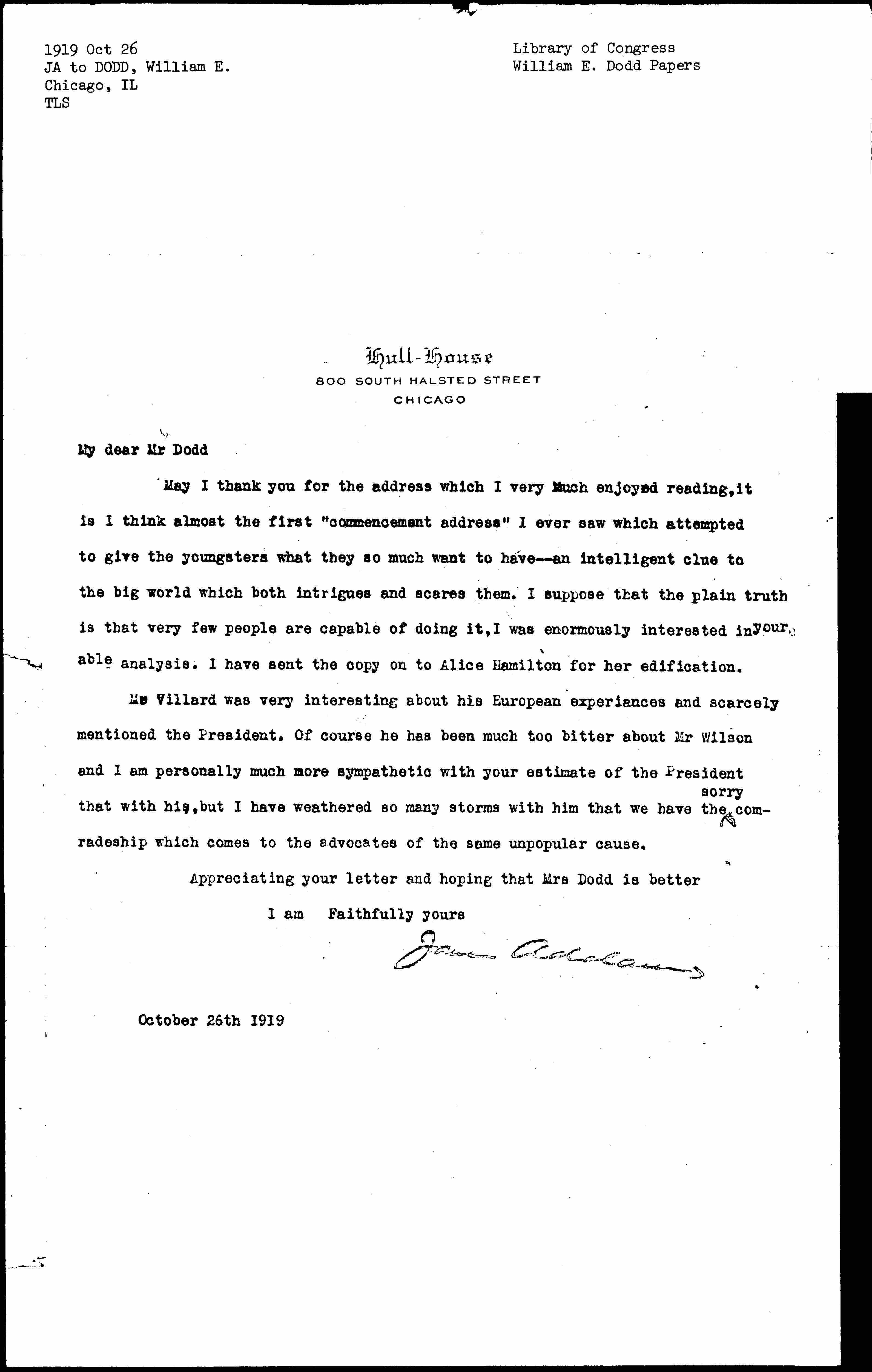 Jane Addams [signed]