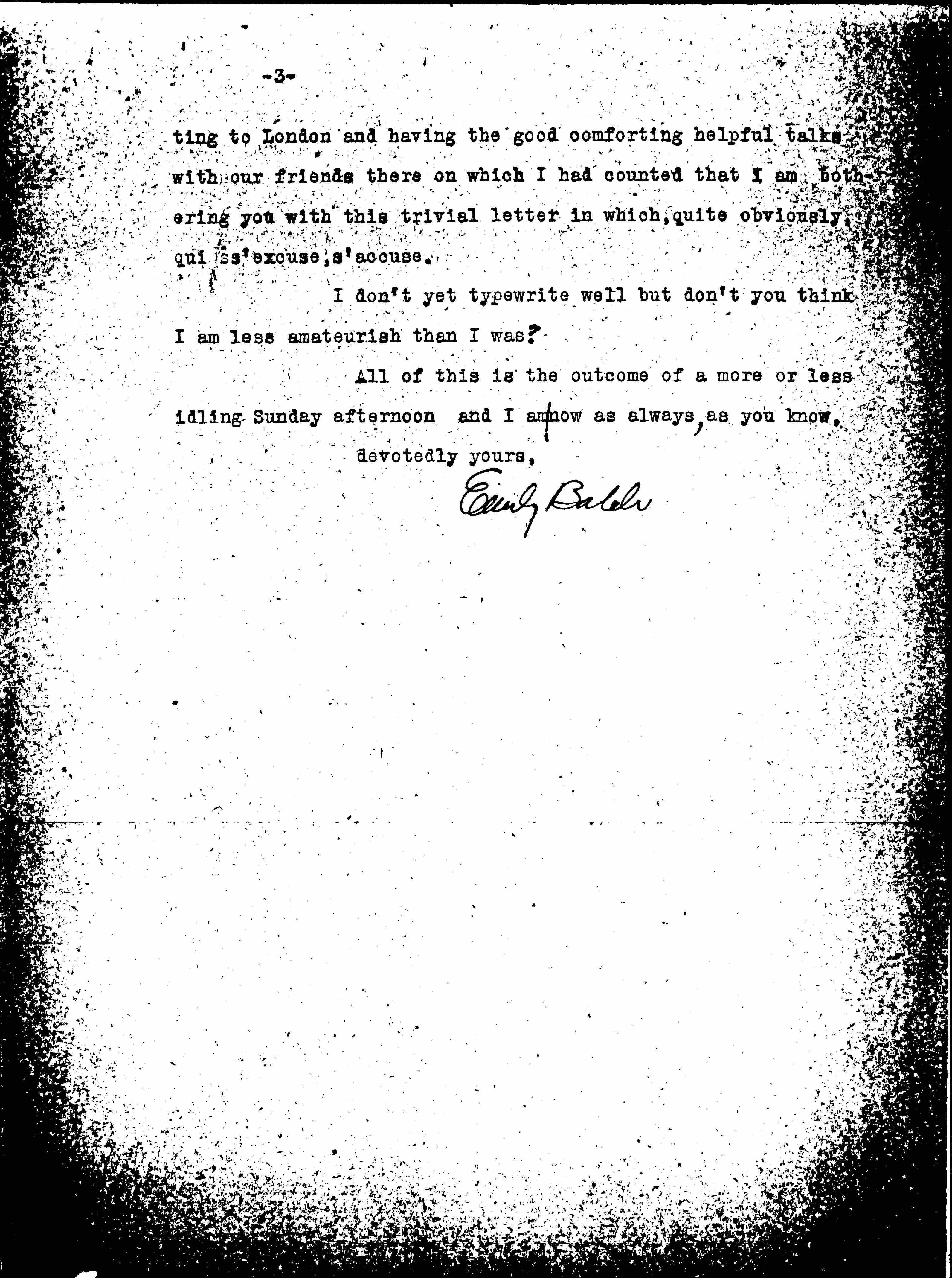 All this is no reason why I should send out a number of papers in one sending without numbering them! The fact that they turned out of different sizes was something I could not foresee. What happened was that we had some things ready to shoot out when more came in and I sent that out to be copied to without reflecting that it ought to be paged with the other. Our English friends have such high standards about all these things that I hate to fail them in these and so much else, as I must. I am going to have some more suitable envelopes for such sendings as those of yesterday prepared. For myself I should have sent those out sealed with letter postage but this so shocked all my [coworkers], to whom tying them up with a bit of thread seemed just the thing, that I yielded. It is partly because I am more or less homesick for disappointment at not getting [page 3] to London and having the good comforting helpful talks with our friends there on which I had counted that I am bothering you with this trivial letter in which, quite obviously, qui s'excuse, s'accuse.
