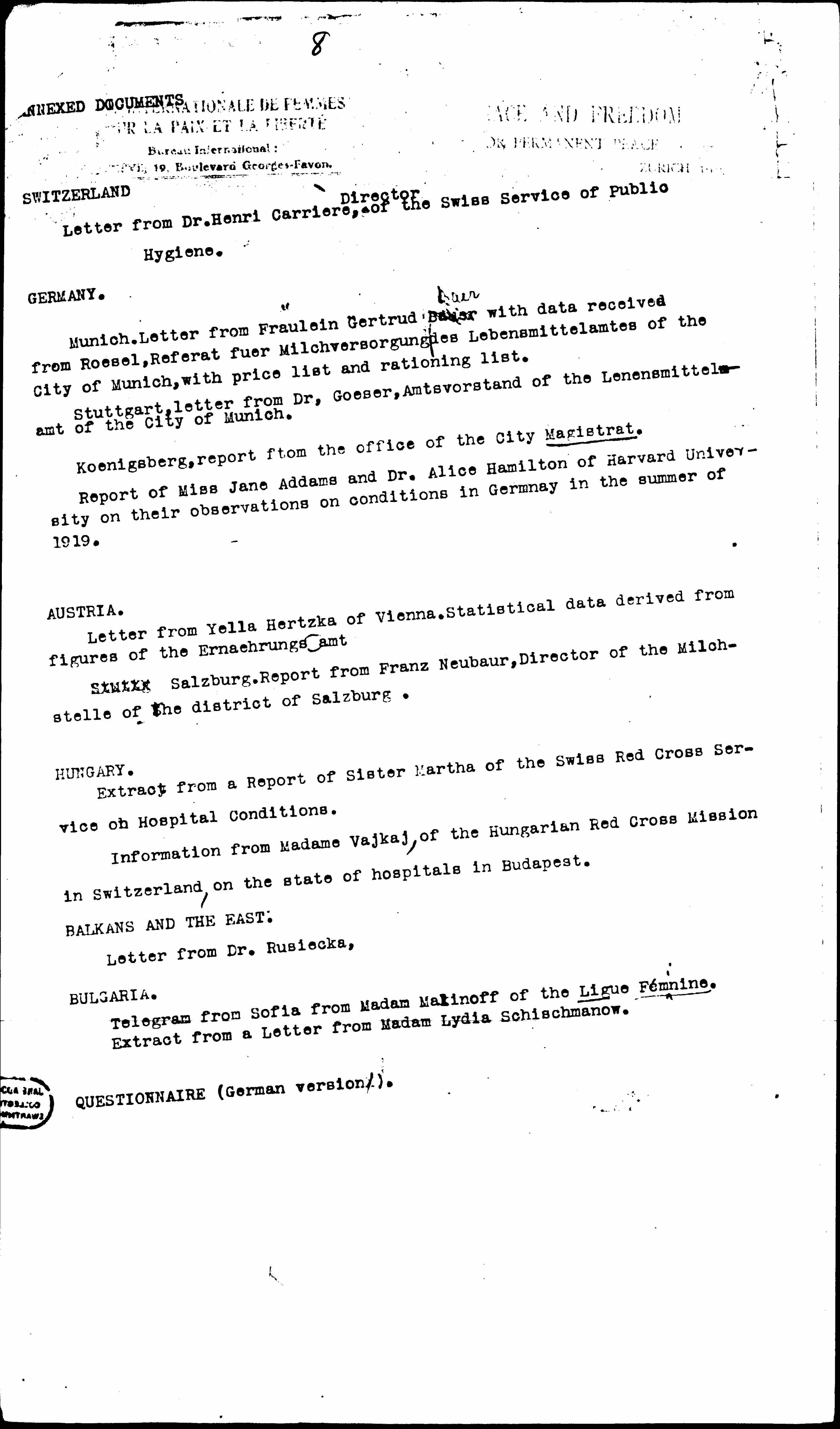 Report of Miss Jane Addams and Dr. Alice Hamilton of Harvard University on their observations on conditions in Germany in the summer of 1919.