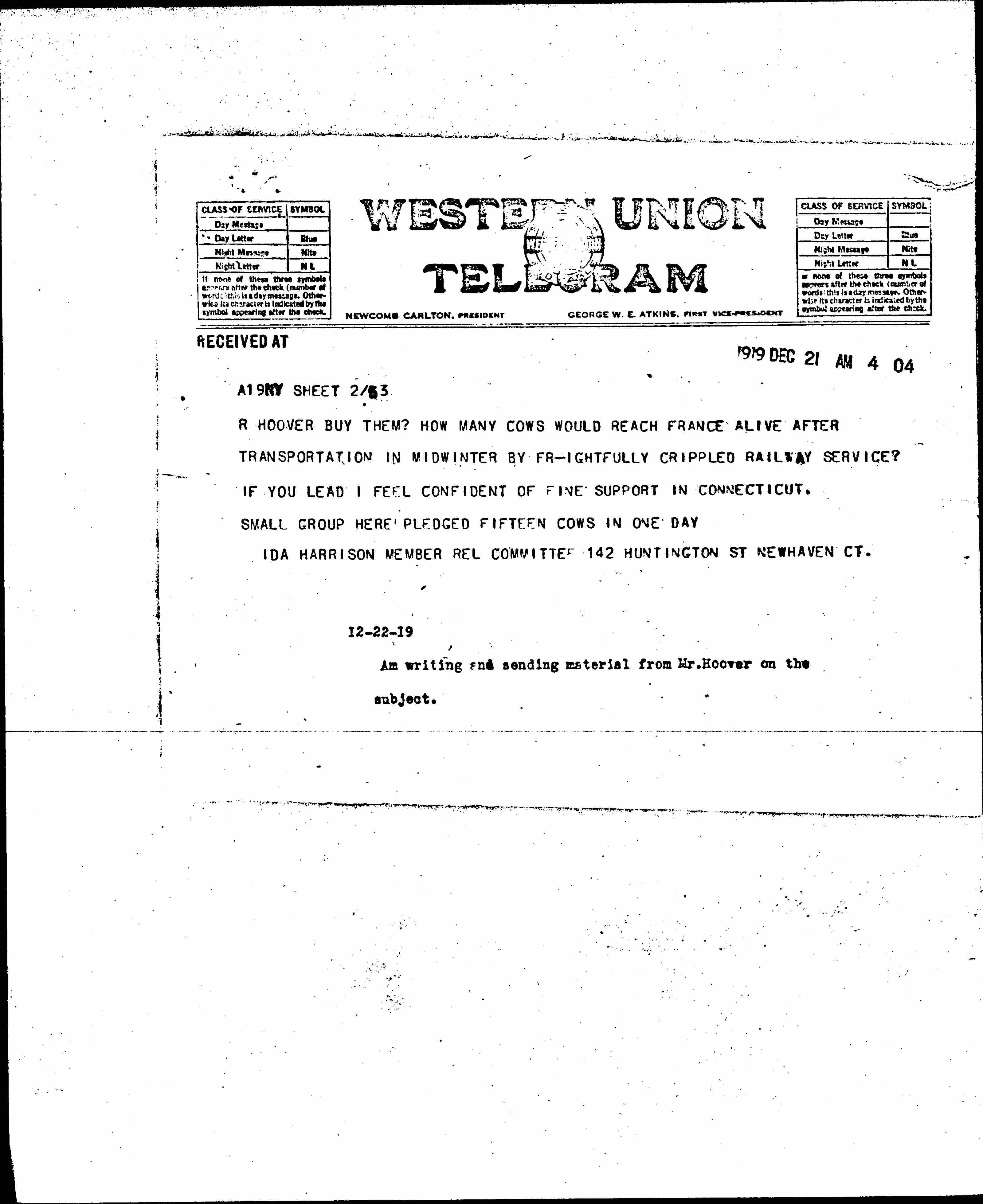Am writing and sending material from Mr. Hoover on the subject.