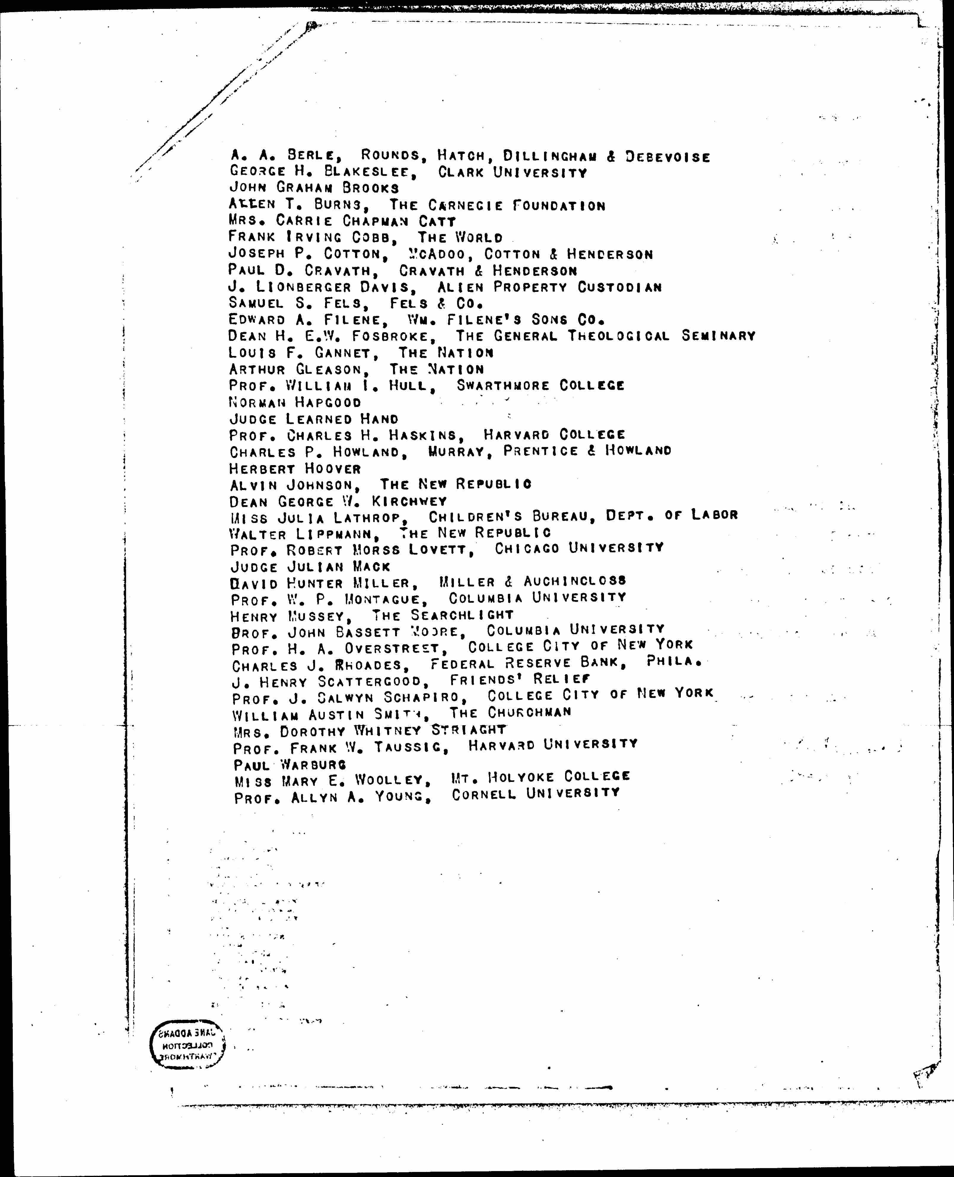 J. Henry Scattergood, Friends' ReliefProf. J Salwyn Schapiro, College City of New York