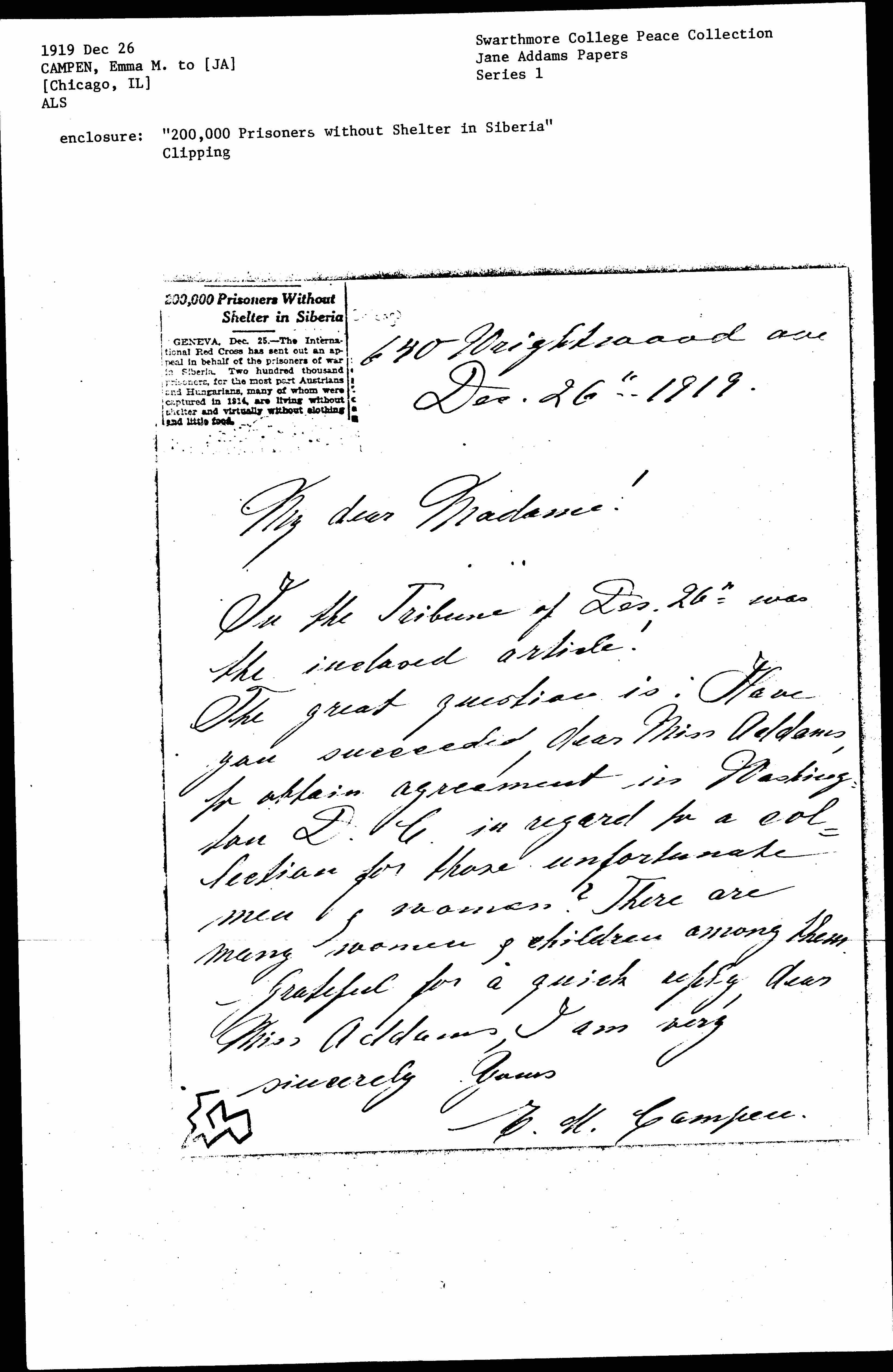 GENEVA, Dec. 25. -- The International Red Cross has sent out an appeal in behalf of the prisoners of war in Siberia. Two hundred thousand prisoners, for the most part Austrians and Hungarians, many of whom were captured in 1914, are living without shelter and virtually without clothing and little food.