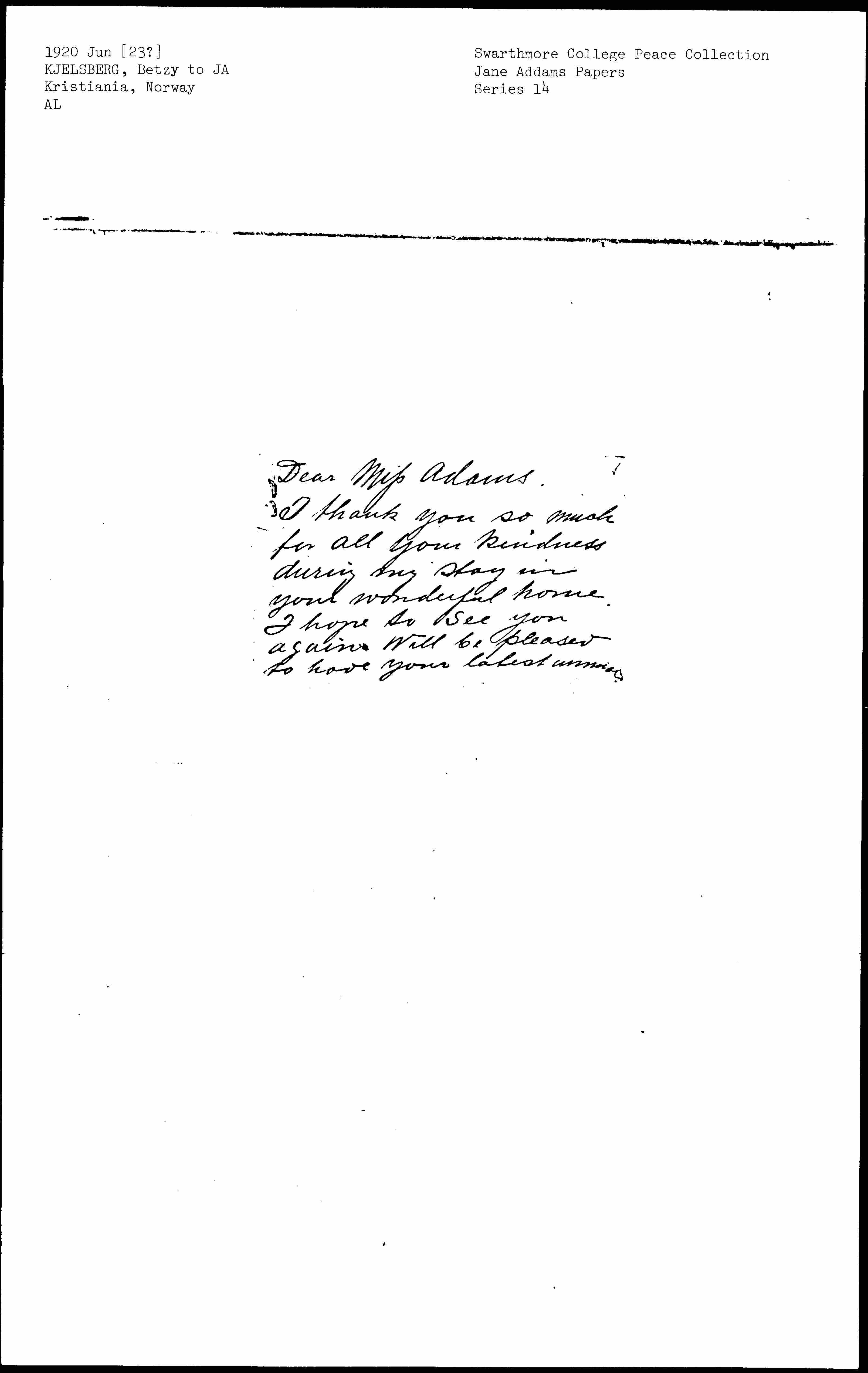 I thank you so much for all your kindness during my stay in your wonderful home. I hope to see you again. Will be pleased to have your latest [illegible]. [page 2]