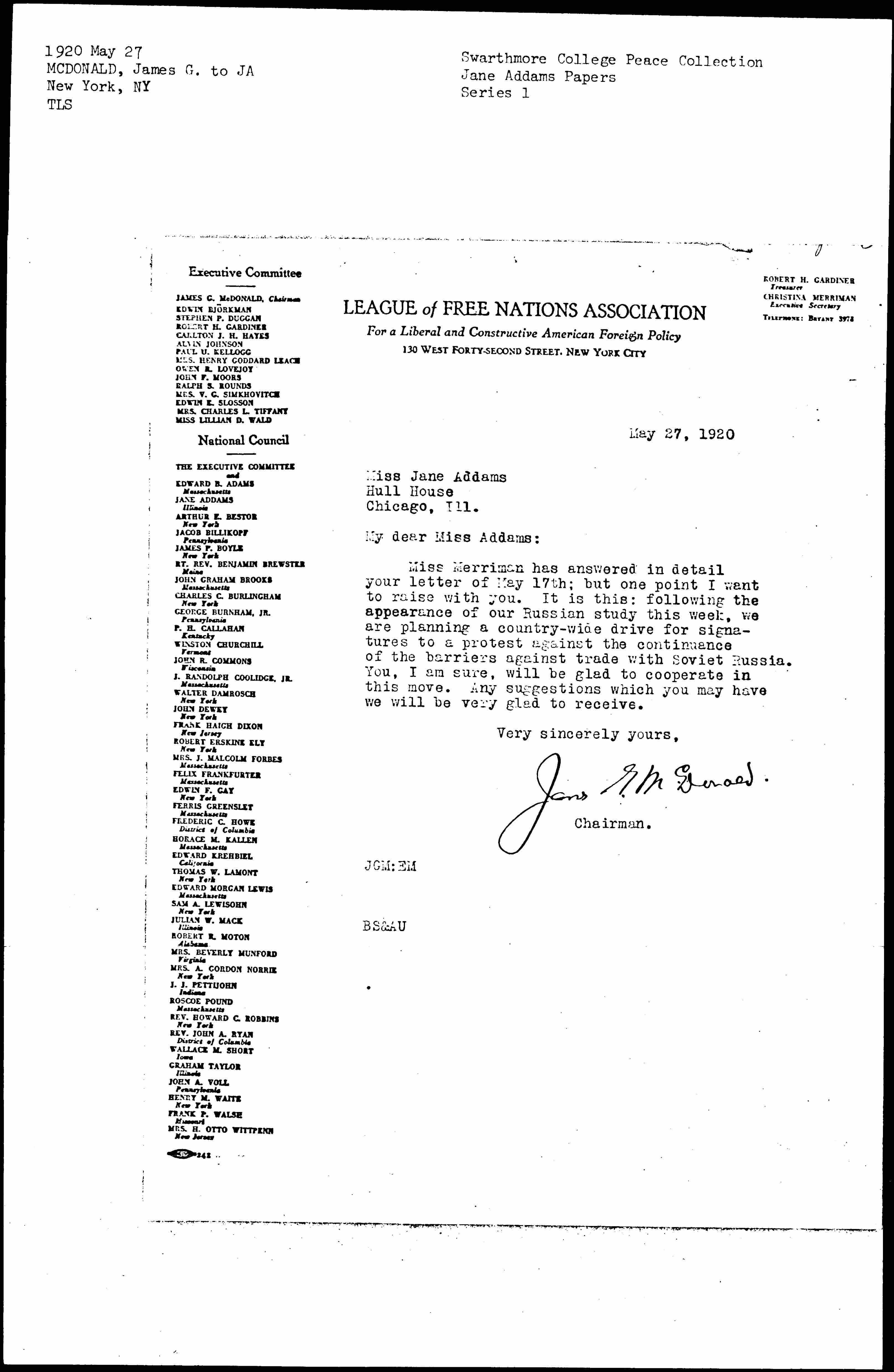 My dear Miss Addams: