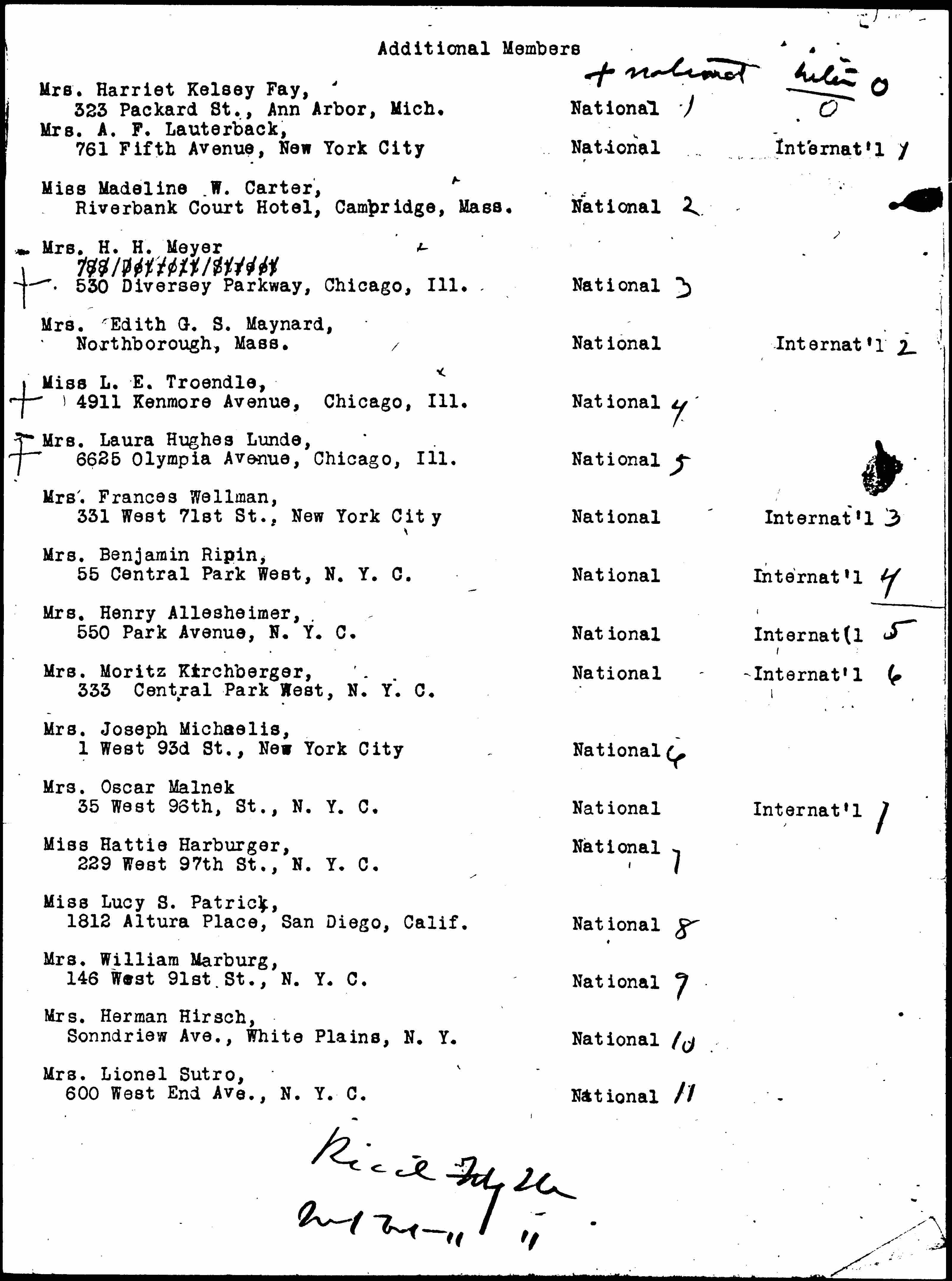 | Mrs. Harriet Kelsey Fay, 323 Packard St., Ann Arbor, Mich. |