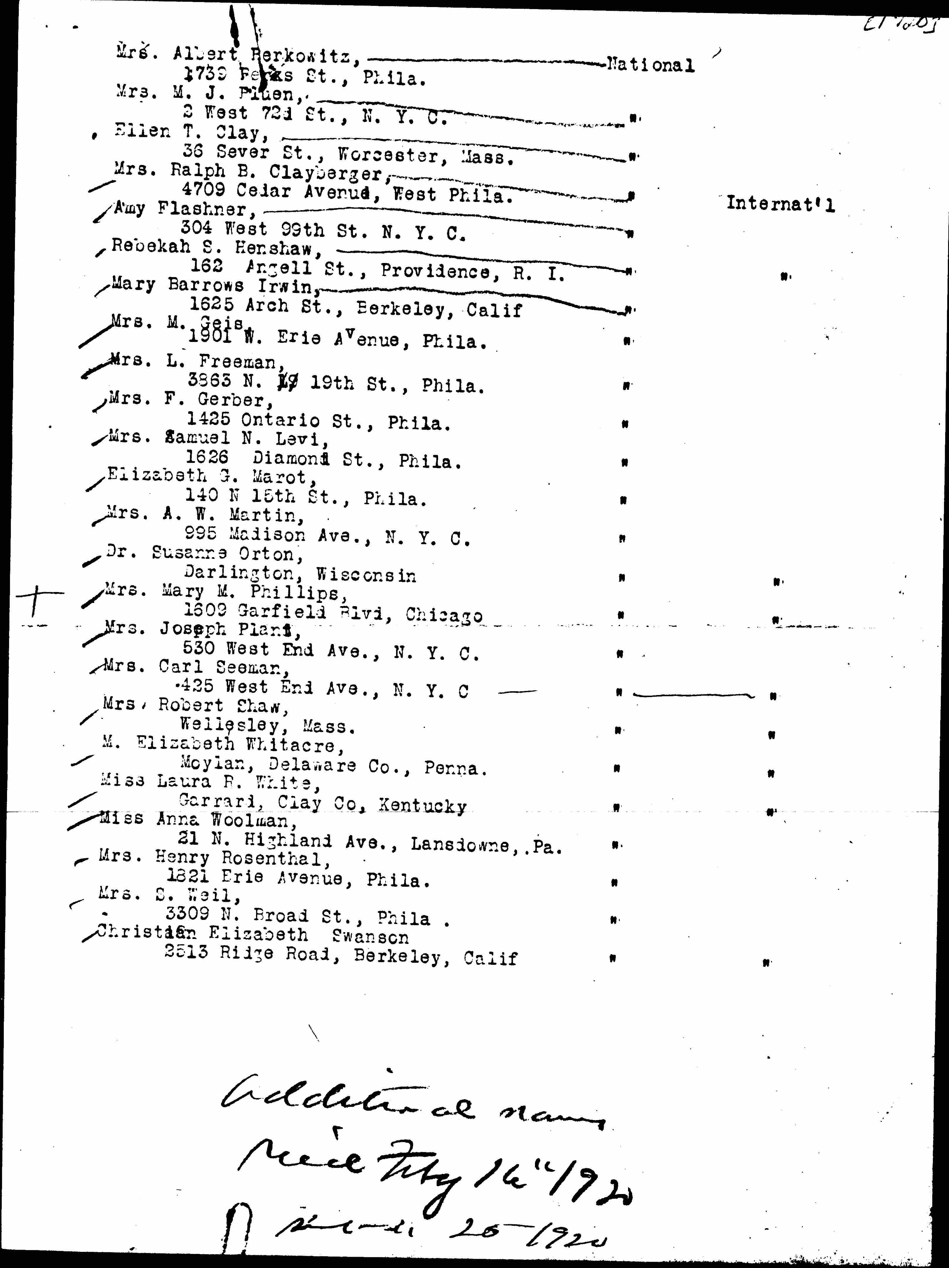 | Mrs. Samuel N. Levi, 1626 Diamond St., Phila. |