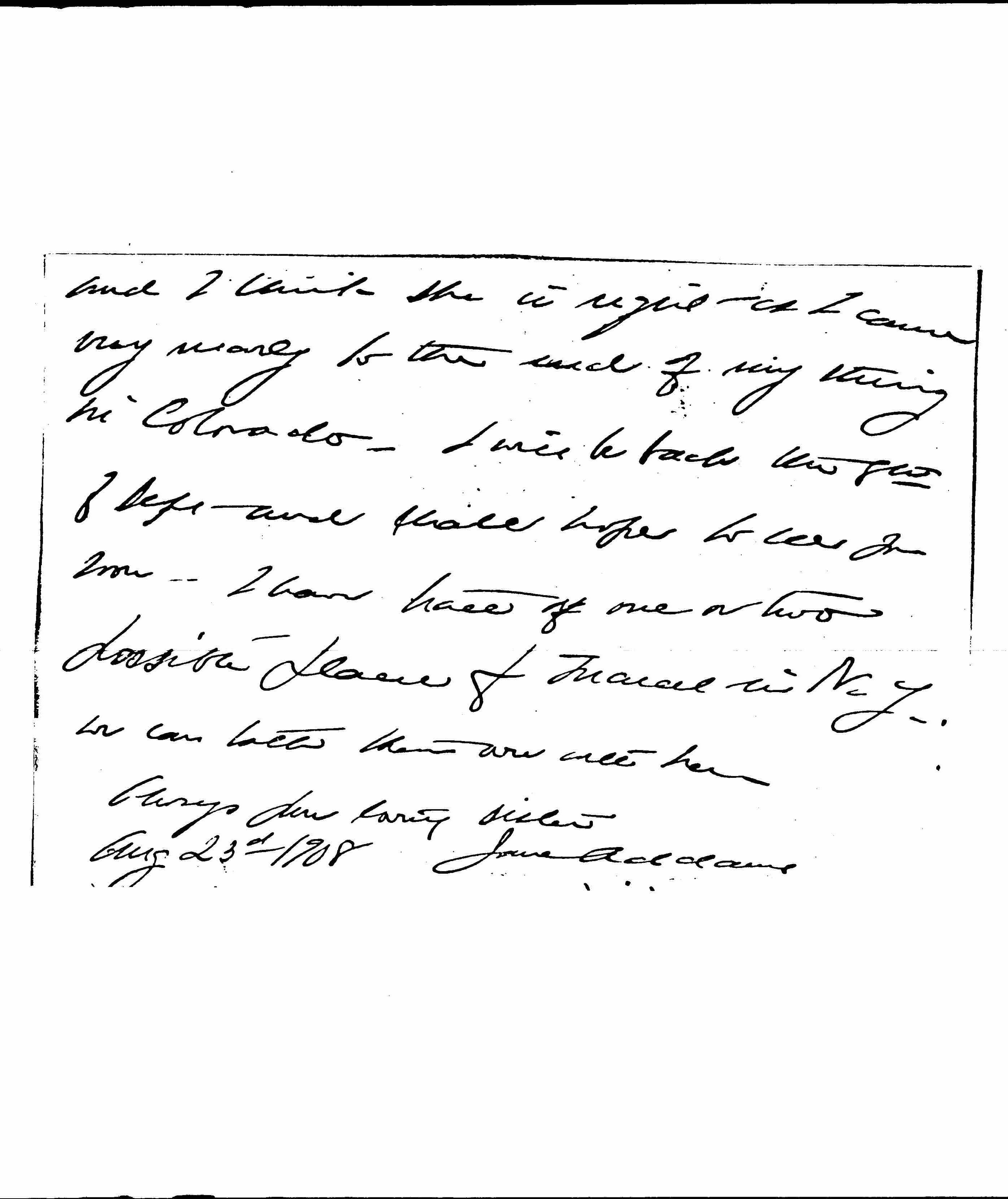 I met Weir Mitchell at an afternoon tea yesterday and he spoke so interestedly about Marcet that I felt sure you would be glad to know how secure he felt about her. He seemed glad to get her away from Bryn Mawr on general principles but [page 2] not because he thought she was over nervous. I have had a fortnight of a beautiful rest here and have one week more. I took my breakfasts in bed the first week and had a splendid massage before I got up, I am much better but Mrs Bowen insists that there must be less lecturing next year [page 3] and I think she is right as I came very nearly to the end of my string in Colorado. I will be back the 8th of Sept and shall hope to see you soon. I have [trace?] of one to two possible places for Marcet in N.Y., we can talk them over with her.