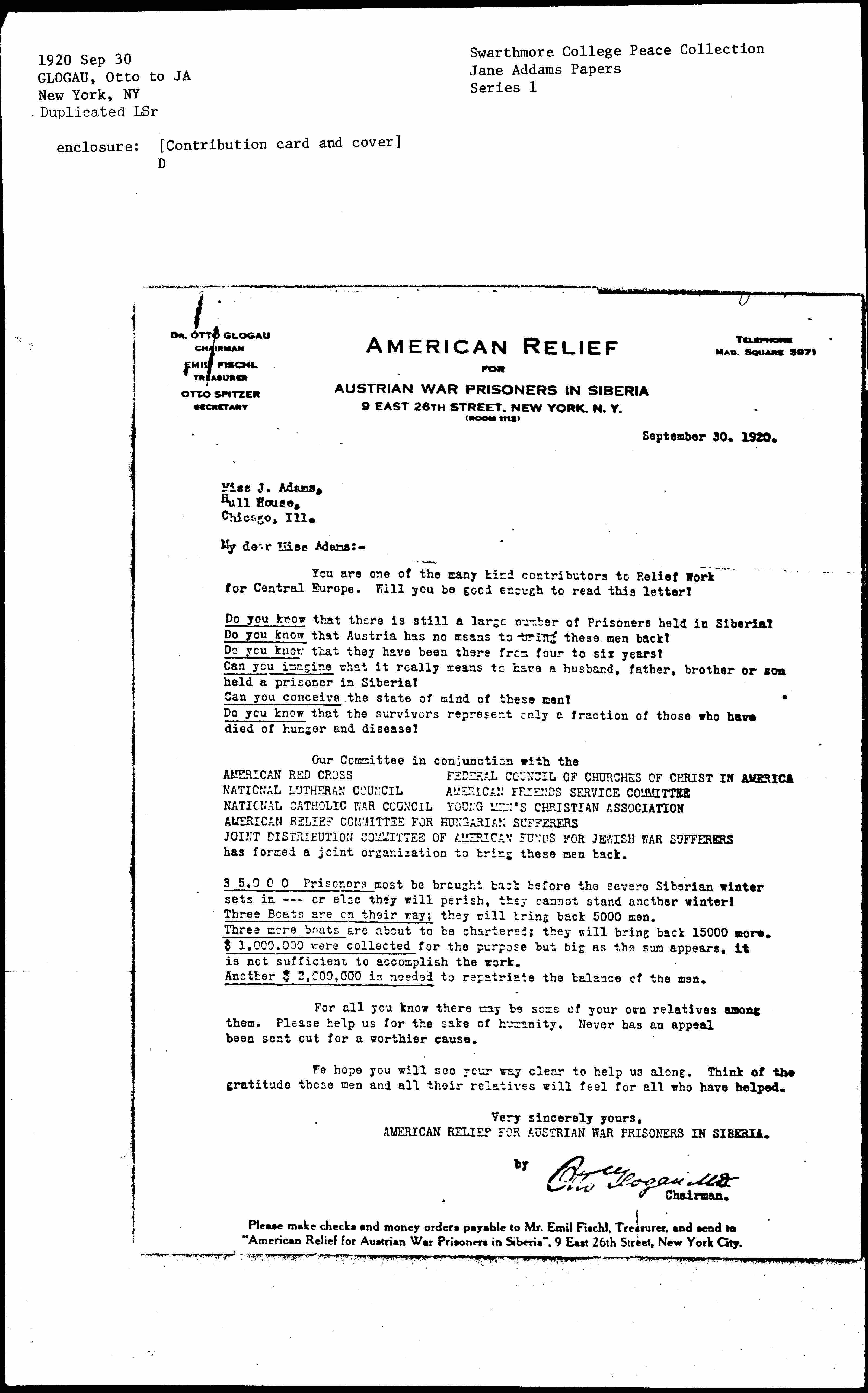Please make checks and money orders payable to Mr. Emil Fischl, Treasurer, and send to "American Relief for Austrian War Prisoners in Siberia". 9 East 26th Street, New York City.