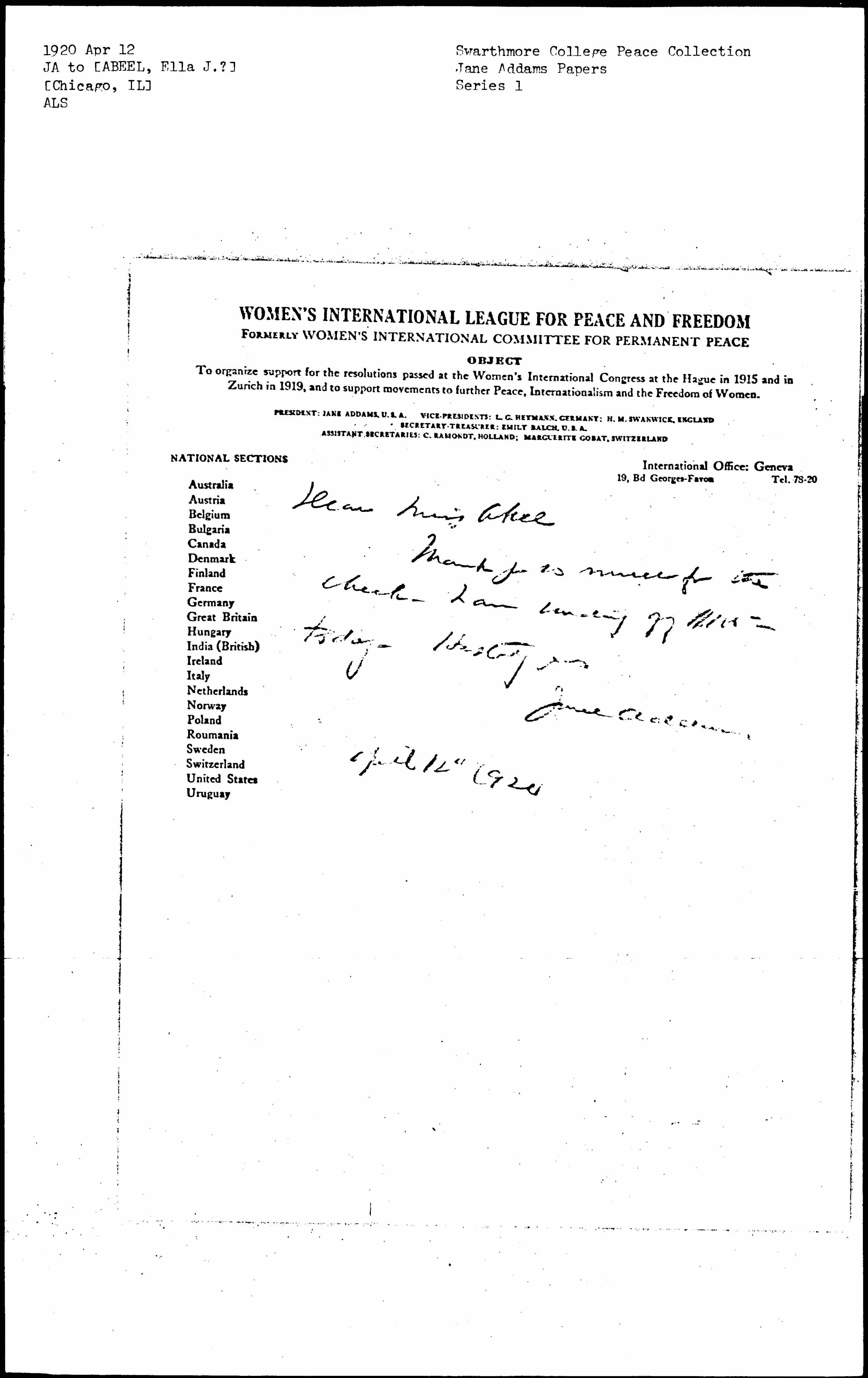 WOMEN’S INTERNATIONAL LEAGUE FOR PEACE AND FREEDOM