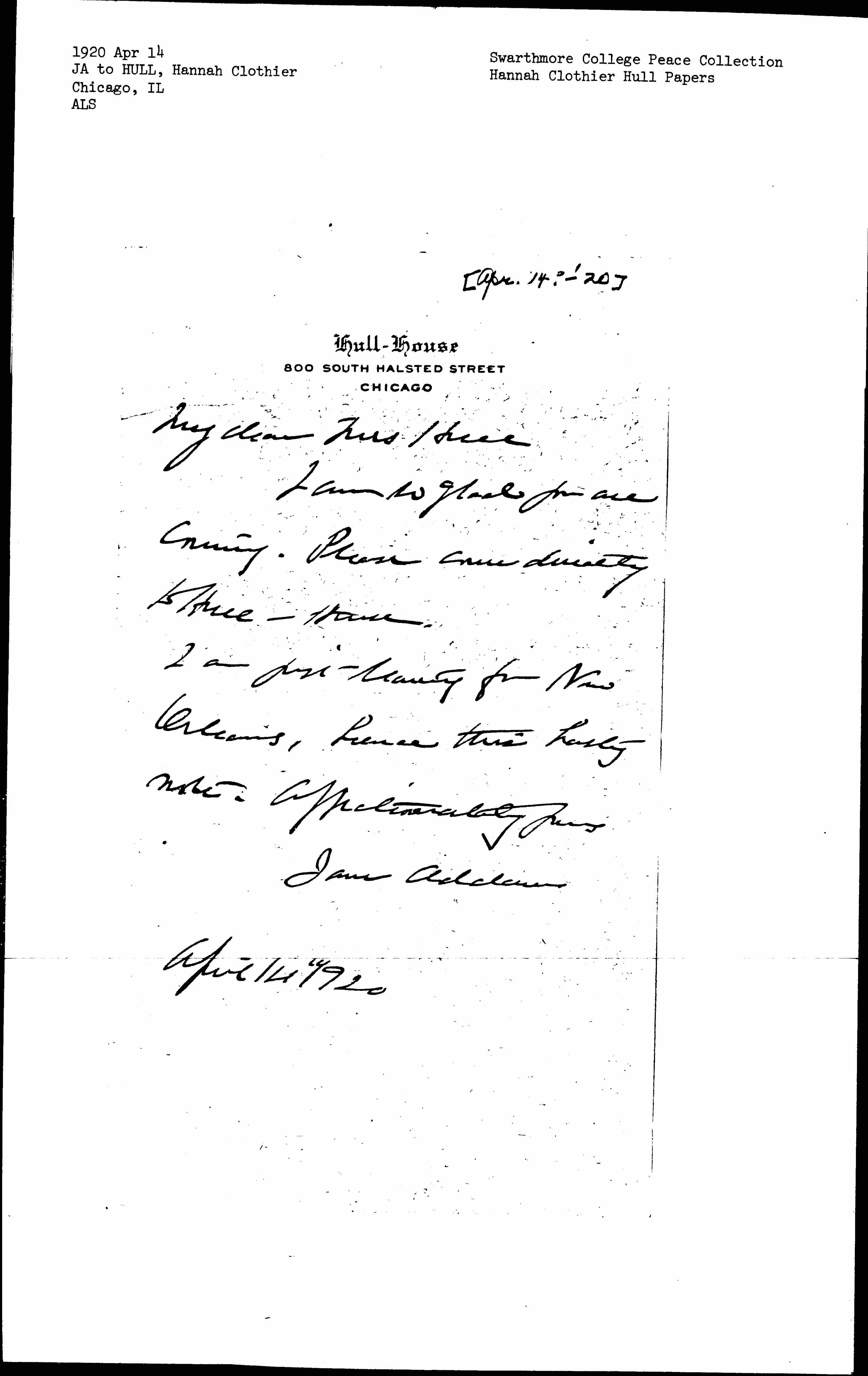 I am just leaving for New Orleans, hence this hasty note. Affectionately yours,