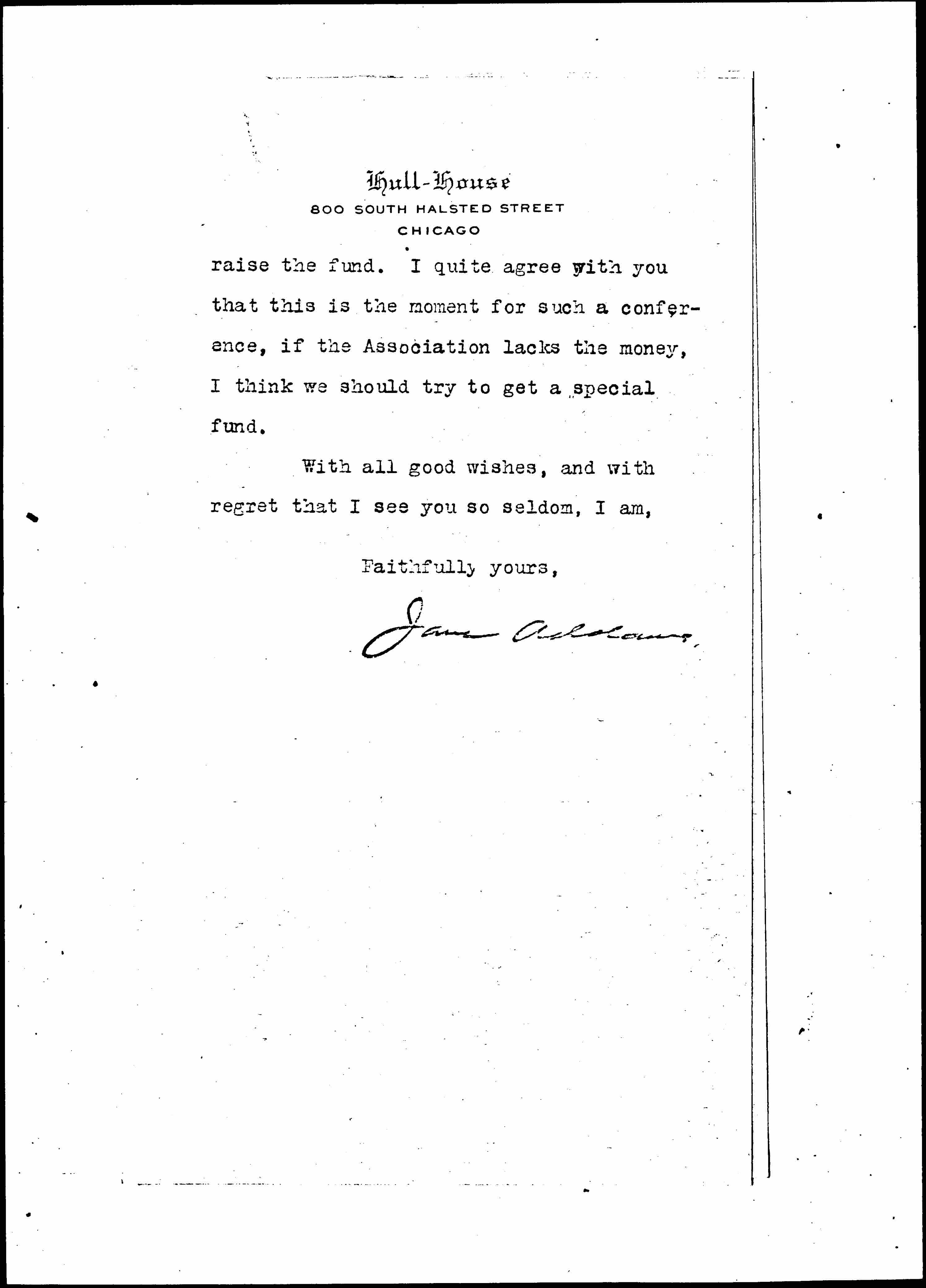 Jane Addams. [signed]