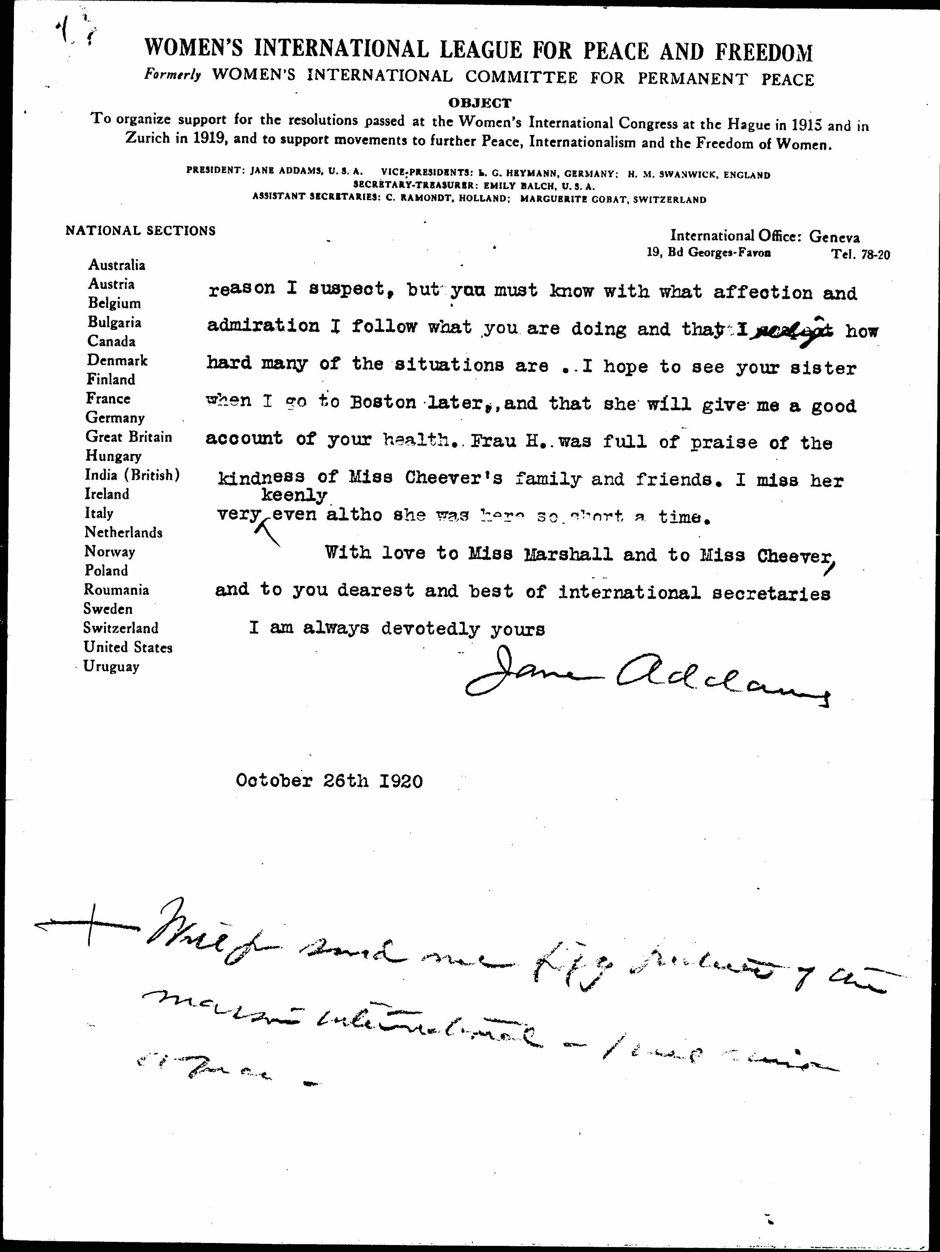 With love to Miss Marshall and to Miss Cheever, and to you dearest and best of international secretaries